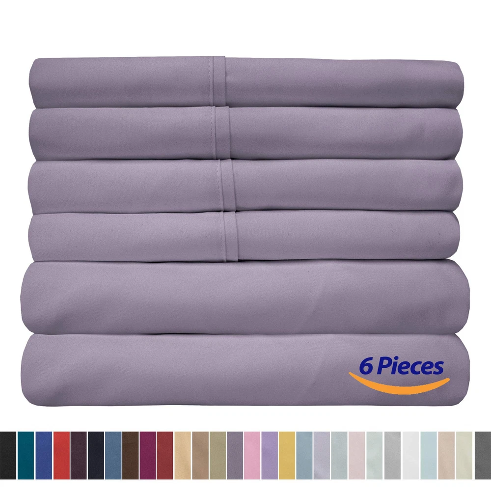 Indulge in the ultimate luxury and comfort with our luxurious fine double brushed microfiber 6-piece sheet set. Crafted from premium quality microfiber, this sheet set offers unparalleled softness and comfort for a truly luxurious night's sleep. The double brushed microfiber fabric is incredibly soft to the touch, providing a gentle caress against your skin for a cozy and comfortable sleep experience. Designed for optimal comfort and durability, our sheet set features a deep pocket design that accommodates mattresses up to 16 inches deep, ensuring a secure and snug fit. The elasticized edges keep the fitted sheet in place throughout the night, preventing it from slipping or bunching up for a hassle-free sleep experience. In addition to their luxurious comfort, our sheet set is also highly breathable, making it ideal for sensitive skin. The breathable fabric allows for optimal airflow, keeping you cool and comfortable throughout the night, and promoting a healthier sleep environment. Say goodbye to wrinkled and faded sheets with our durable microfiber sheet set. The double brushed microfiber fabric is naturally -resistant, ensuring a smooth and pristine appearance wash after wash. Additionally, the fade-resistant color ensures that your sheets retain their vibrant hue, adding a touch of elegance to your bedding ensemble for years to come. Cleaning and maintaining our sheet set is effortless. Simply machine wash in cold water and tumble dry on low heat for quick and convenient cleaning. The durable microfiber fabric is shrink-resistant and colorfast, ensuring that your sheets retain their softness, color, and shape wash after wash, making them a long-lasting and investment in luxurious comfort. Treat yourself to the ultimate luxury and comfort with our luxurious fine double brushed microfiber 6-piece sheet set and transform your bedroom into a serene and inviting retreat ELASTIC CORNERS BUILT IN - What separates our bed sheets from the rest are the special elastic sheet straps built in. These elastic corners keep your fitted sheet secure to the bed and come on all of our sheets. SLEEP IN LUXURY – No more sleepless nights on uncomfortably itchy sheets! Sleep soundly on the softest 1500 Supreme Deluxe Collection sheets. Be warned, though: You may never be an early bird again! SUPERB SHEET SET – Each luxurious set has 1 fitted, 1 flat sheet, and 4 pillowcases (NOTE: Twin & Twin XL sizes include 2 pillowcases). Deep pockets, thick elastic, and BUILT IN SHEET STRAPS make your new soft sheets stay in place! STAY CLEANER, LONGER – Who has time to wash their sheets every few nights? When it’s time for a wash, machine wash cold, and tumble dry low. PERFECT FIT FOR ANY BED – Sleep soundly for years to come! Your deep pocket sheets are fade, shrink, and resistant. We’ve got you (and your bed) covered.