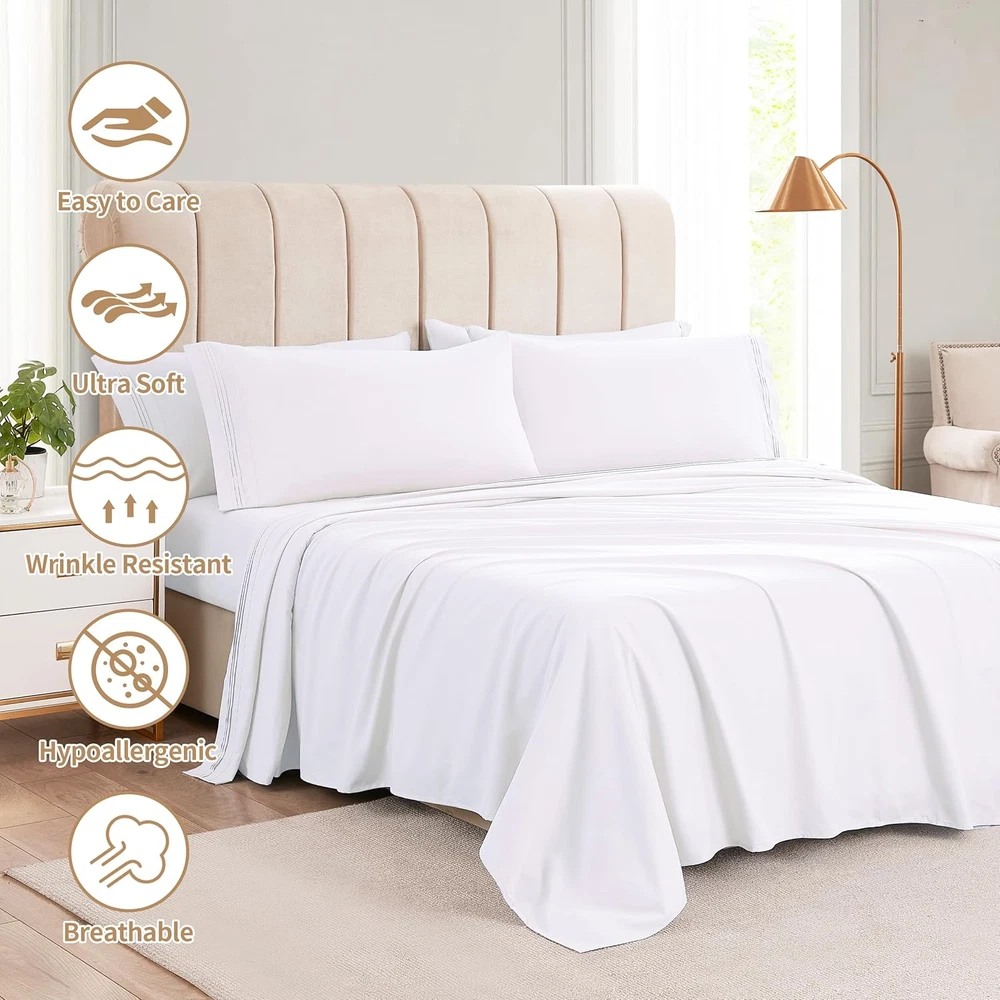 Store New Arrivals Add to Favorite View Feedback Contact Queen Sheets Set-6 Piece Bedding Sheets & Pillowcases-Luxury Hotel Bed Set for Women & Men - Deep Pockets-Soft & Cooling Sheet -Brushed Microfiber Easy Care & Wrinkle Free Sheets Description Item model number 1 Style Modern Pattern Solid Country of Origin China Theme Love, Bedroom Number of Pieces 6 Unit Count 6.0 Count Fitted Sheet Pocket Depth 16 Inches Batteries required No Pillowcase Quantity 4 Material Microfiber Age Range (Description) Adult Seasons All Package Dimensions 12.36 x 9.84 x 4.21 inches Included Components 4* Pillowcases, 1*Fitted Sheet, 1*Flat Sheet Closure Type Envelope Item Weight 3.1 pounds Sham Quantity 4 Special Feature Fade Resistant, Odor Resistant, Deep Pocket, Wrinkle Resistant, Unlit Color White Thread Count 200 Fabric Type Cotton Product Care Instructions Machine Wash Size Queen Cotton EXTRA DEEP POCKET QUEEN SHEETS: Designed for mattresses with very deep pockets, the KKN sheets are perfect for any mattress with 18, 20, 21, 22 and 24 inch deep pockets. The extra deep fitted sheets are surrounded by a stretchable elastic band that runs around the entire perimeter so they can be securely fastened to the bed, perfect for extra tall and large mattresses. Rest assured that these oversized sheets will be a great choice for your beddin 6 PCS SHEET & PILLOWCASE SETS: This bed sheet set comes with 1 flat sheet, 1 fitted sheet and 4 pillowcases. Made from microfiber, this 6-piece queen size sheet set offers a more comfortable experience than 100% cotton sheets, with fabric that feels nice and breathable; hand-designed and tailored by renowned London-based costume designers, it's designed to bring the comforts of a luxury hotel to your home UPGRADED BASIC SHEET SET: Add an air of luxury and comfort to any bedroom with this queen size sheet set. Deep pockets ensure a snug fit to the mattress, soft and cool to touch, providing a comfortable sleeping experience. The microfiber material is comfortable, easy to care for with wrinkle-free features that keep the bed looking clean and tidy. Attention to design detail and sheet quality make them a great addition to a bedding collection or incorporate them into a regular sheet rotation Luxury Hotel Bedding Set:These are made of the highest quality double brushed microfiber yarns.softer,finer touch.give you the sleeping experience of a luxury,enjoy restful sleep and sweet dreams every night WASHABLE & MICROFIBER: Softer than cotton sheets. We make this softest microfiber sheets that are comfortable and easy to care for, with wrinkle-resistant; machine washable, retaining quality and durability after multiple washes, and versatile in style to complement a variety of bedrooms, making them the perfect holiday gift for family, friends, or loved ones. If you are used to cotton sheets and have never tried microfiber sheets, we suggest you give them a try SATISFACTION: We the quality of our sheet sets from the source, and we're sure you'll love these KKN sheet sets. However, if you're not satisfied with them for any reason, let us know and we'll recall them immediately. Add them to your cart and enjoy the comfort of KKN queen size bed sheets with confidence Sheet Set 6 pieces ABOUT US We offer the best prices around on high quality products. Our E-store includes media such as books, movies, music and games while offering electronics, toys, sporting apparel, clothing, tools, general home, garden items and more. SHIPPING We are always working hard to ensure your package arrives as soon as possible. Please understand that some factors like weather, high postal traffic, and the performance of shipping companies are outside of our control. We offer free shipping to the lower 48 states and ship within 2 business days of payment, usually sooner. We do not accept P.O. Boxes. Please provide a physical address. For shipping outside of the continental USA, we only use eBay's Global Shipping Program.The item is shipped to KY and then sent to the rest of the world. International customers are responsible for all duties and taxes. Continue to check out in order to calculate costs for shipping the item to your country. Messages regarding eBay's Global Shipping Program MUST be directed at eBay EXCLUSIVELY. RETURNS We offer a 30-Day Return Policy on items which you are not completely satisfied with. You have the option for a full-refund or an exchange of the item. No returns are available on items shipped outside of the USA. PAYMENT We accept PayPal. CONTACT US This page content is yet to come Please ad us to your favorite seller and visit again later Thank You CUSTOMER SATISFACTION We try our very best to make sure every customer is completely satisfied. If there's a problem, message us! We're happy to help. WE ACCEPT Copyright © 2021 AutoDS. | All Rights Reserved