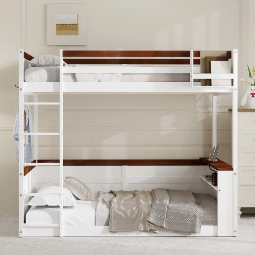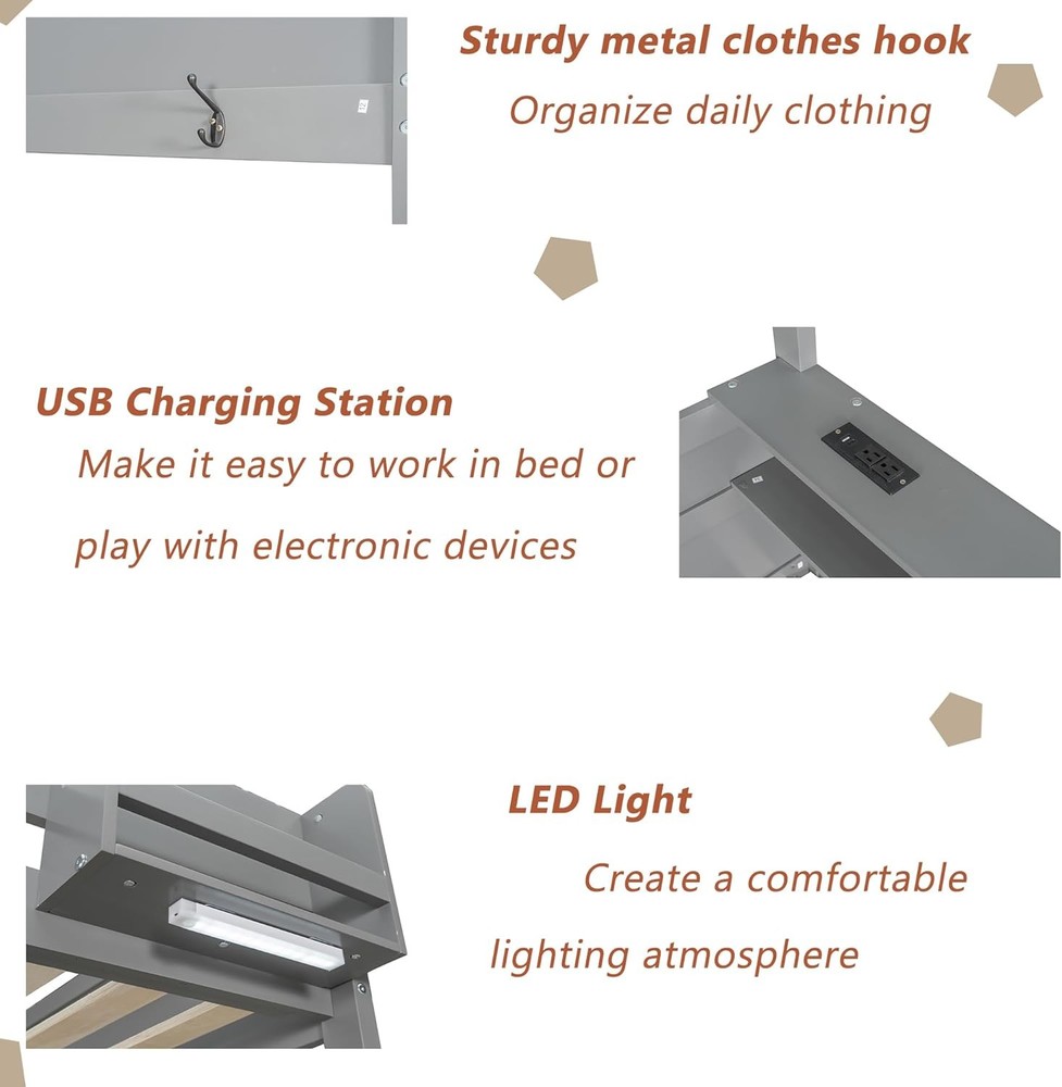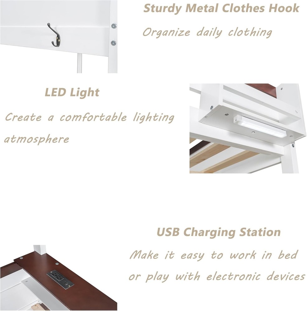 Queen Size Bunk Bed with Storage Shelves LED Light & USB Ports Bedroom Furniture [๐๐ฆ๐ฉ๐ฅ๐ ๐๐ญ๐จ๐ซ๐๐ ๐ ๐๐ฉ๐๐๐] Wood queen bunk bed combines a workstation with multiple storage solutions, with 2 small shelves under raised bed, an upper shelf that can be used as an office desk, an additional storage box on the upper bed, as well as 3 sturdy metal coat hooks for easy access to everyday clothes, creating a perfect study/entertainment area while keeping essentials organized and within reach. [๐๐๐ ๐๐ข๐ ๐ก๐ญ & ๐๐๐ ๐๐ก๐๐ซ๐ ๐ข๐ง๐ ๐๐ญ๐๐ญ๐ข๐จ๐ง] The lower bed storage shelf also has a USB charging design, which is convenient for charging electronic devices, making it easier to work in bed, there is an LED light under storage box in the bed. [๐๐ฏ๐๐ซ๐ฌ๐ข๐ณ๐๐] Queen over queen bunk bed offers a larger sleeping area that is more comfortable and spacious, with ladder on upper bed for easy getting in and out of the bed, full-length guardrails to ensure a safe sleeping environment. [๐๐ญ๐ฎ๐ซ๐๐ฒ ๐๐๐ ๐ ๐ซ๐๐ฆ๐] Queen over queen bunk beds for adults is made of high quality solid pine wood and MDF, reliable construction for long term use to ensure sturdiness and durability, with a 650 lbs capacity per bed to meet daily rest/office needs. [๐๐๐ฌ๐ฒ ๐ญ๐จ ๐๐ฌ๐ฌ๐๐ฆ๐๐ฅ๐] Wooden queen bunk beds comes in 2 packages with detailed assembly instructions, note that if you encounter any problems during assembly or use, you can contact us by email. Payment Delivery details Terms of sales About us Contact us Payment We accept payment via paypal,Visa Card and so on. Please make sure your eBay address is correct before you pay. Unpaid Item will be closed after 5 days. All the unpaid winner will receive an UPI to recover the final value charge of the transaction. Delivery details Package will be sent out within 48 hours after payment of purchases are cleared. Delivery time is 3-6 business days! Pick-up is unsupported service. We will NOT be responsible for any delivery failure due to unclear or incomplete addresses. Delivery is not available on weekends, public holidays or after business hours Terms of sales If you are pleased with transaction, pls give us postive feedback and 5 star ratings , thanks! :-) If you received wrong or defective products, please take photos and contact us for best solutions. All items must be returned in NEW condition, including the packaging, and all accessories. Products damaged or mis-used by person are not under warranty. All charges for return are to be paid by the customer. Shipping and handling charges are not refundable. If any problem, just feel free to contact us first. We are sure we can deal it well. About us *Brand new item. *High quality, competitive price. *Warehhouse in US, UK, DE,FR. Contact us 9:30AM-18:30PM (Beijing Time) from Monday to Friday. Any message for us will be replied within 24 hours.