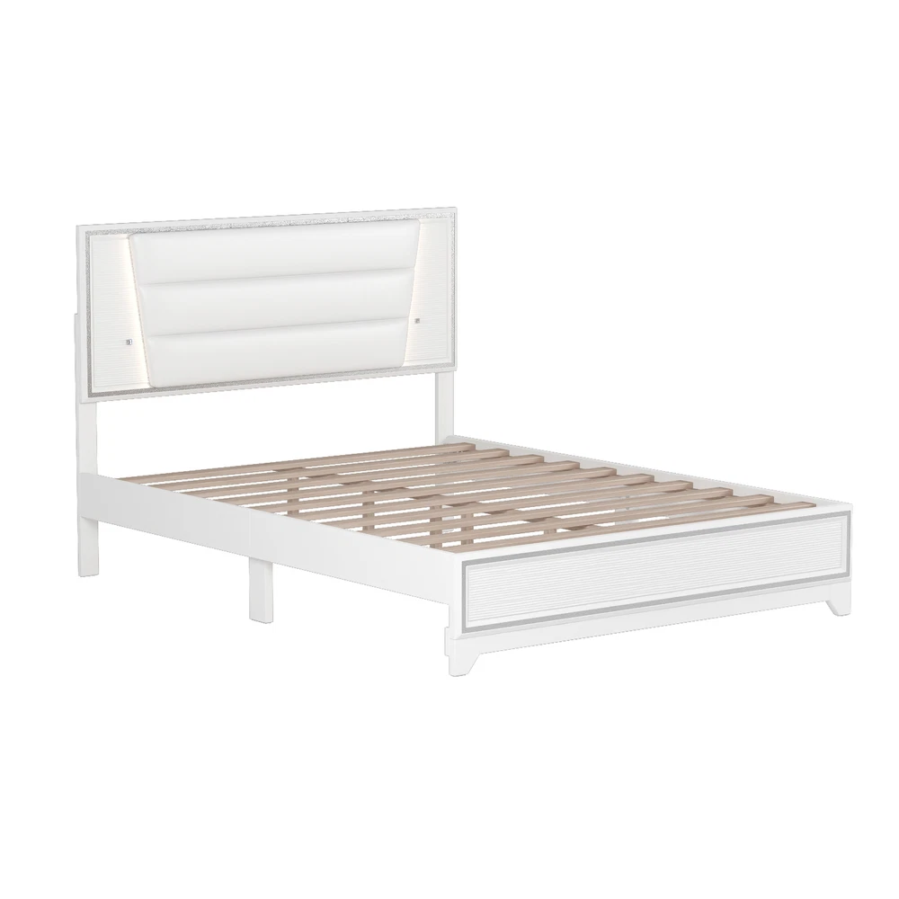 Queen Size PU Upholstered Bed, Headboard with LED Light Strips and Sparkling Shi