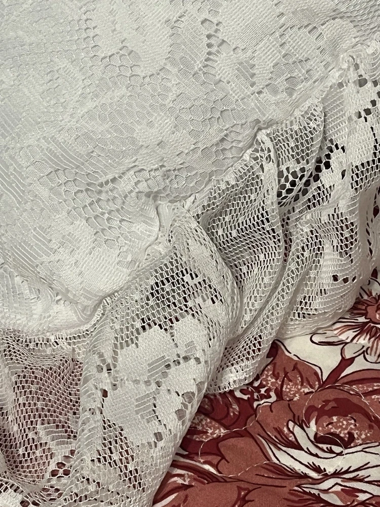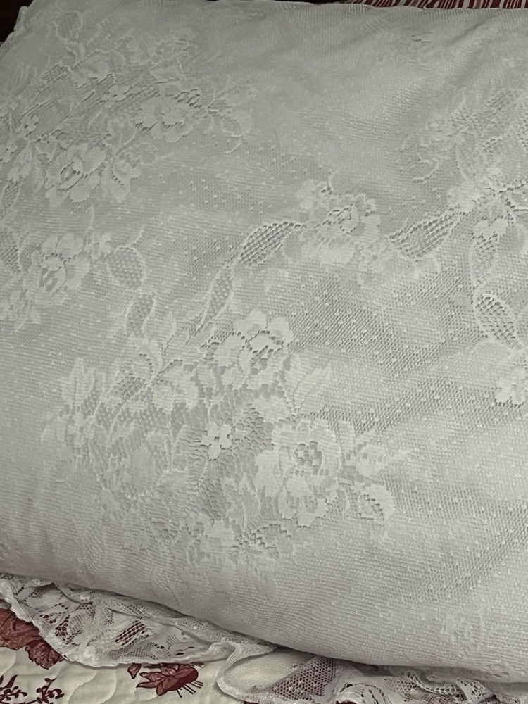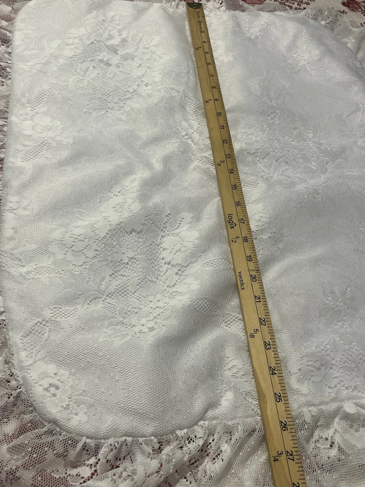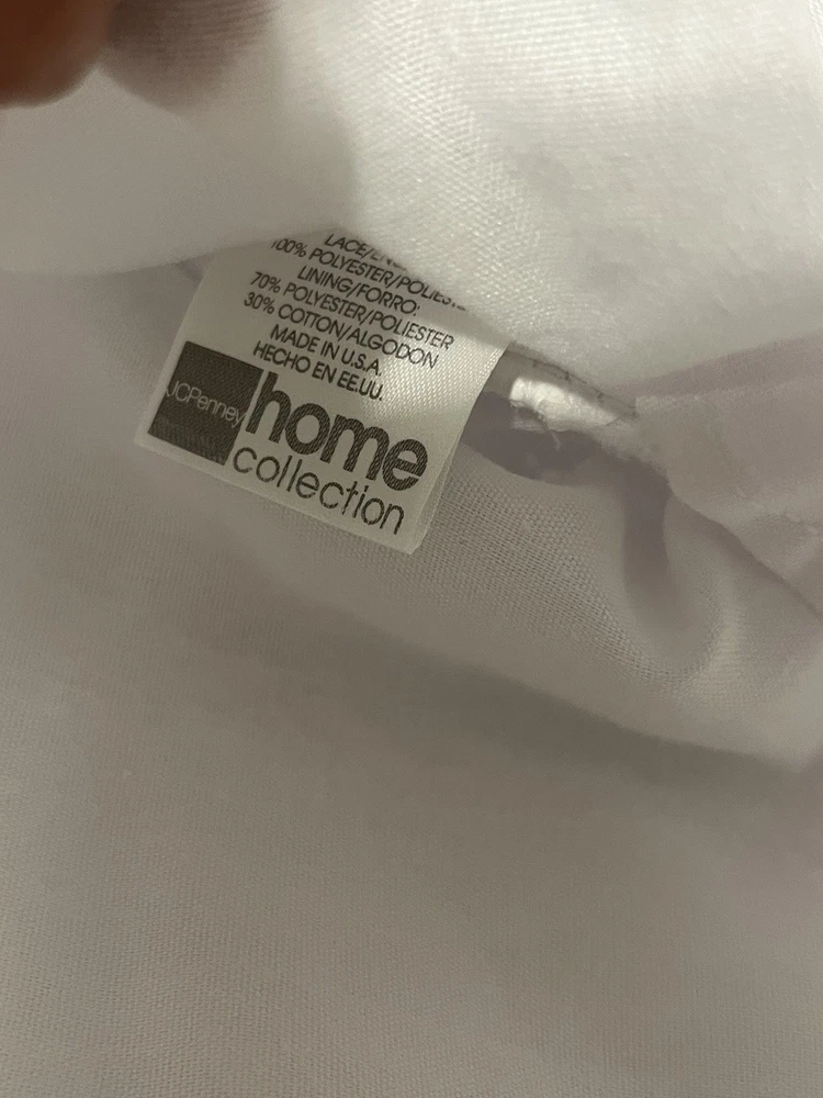 Very very pretty as well as shabby Chicish! There are two standard size pillow cases. Both are the same. These are white not cream, ecru pure white. Beautiful floral pattern all over in lace with a lace ruffle that goes all the way around. The back is also white with the center open to place pillow in. I had another set not using hanging in closet. The one shown is mine and an example only to show the pretty details etc. Both are in like new condition and have not been used. JC Penny home collection. There is some padding on the top with the white background under the lace. Please look at all photos and blow them up also. Items sold as you see and pictures are part of the description. At this time I do not accept returns unknown selling future. Please ask any questions. Come from clean smoke free home. Thanks Usually ship same day or next it is now winter so put two days just in case. Thanks