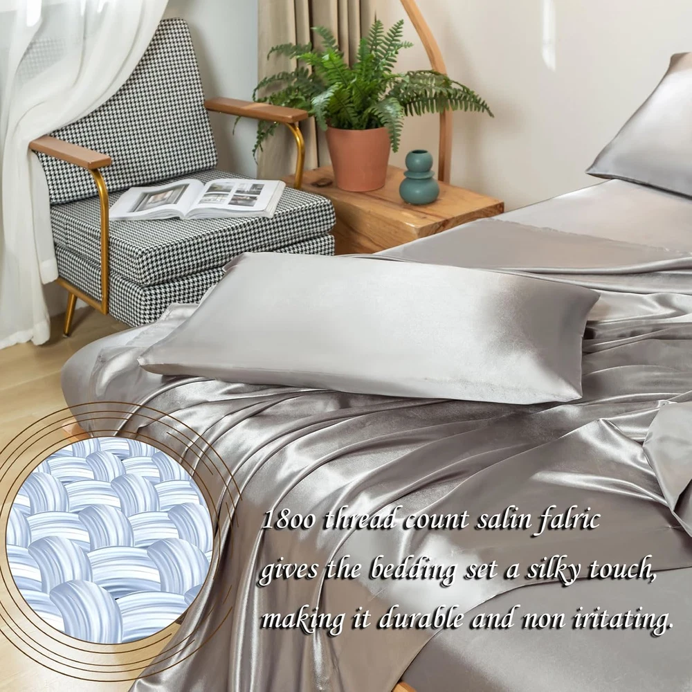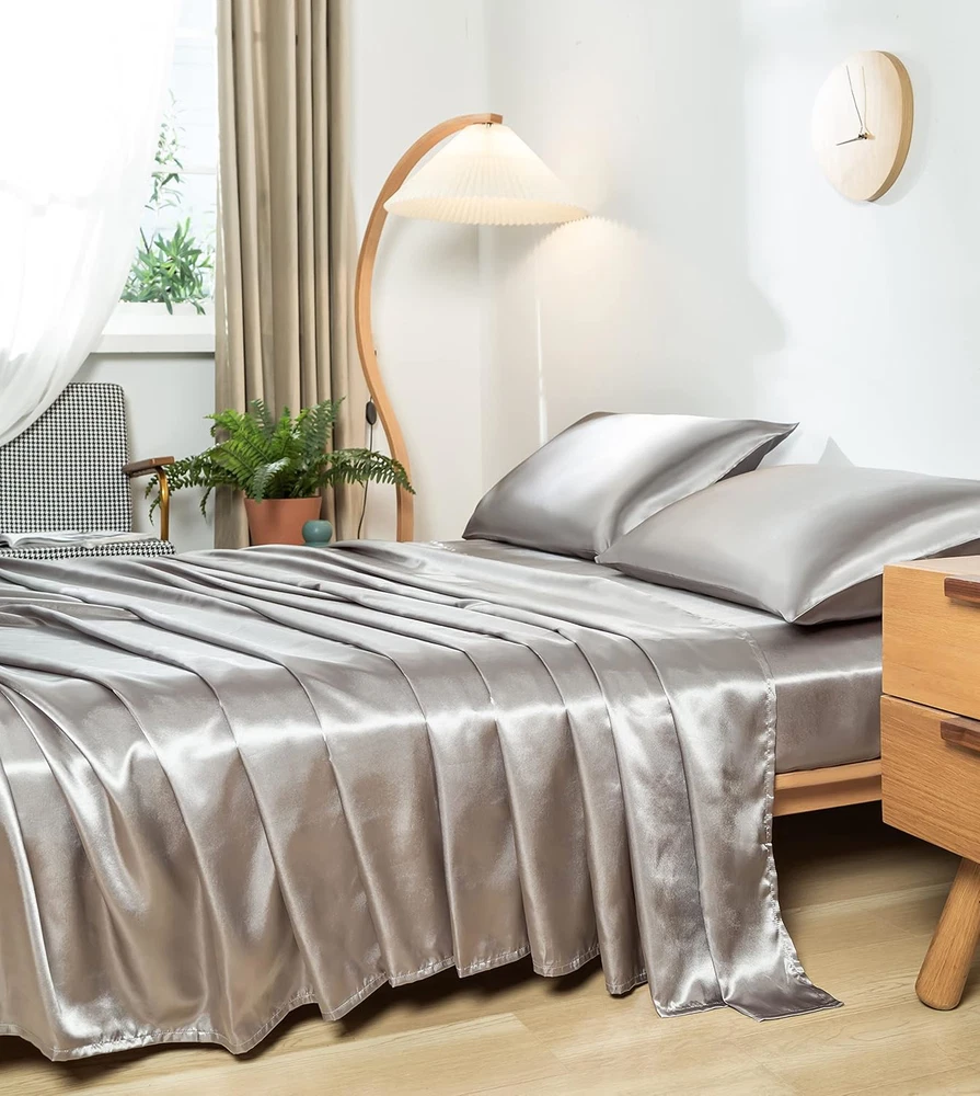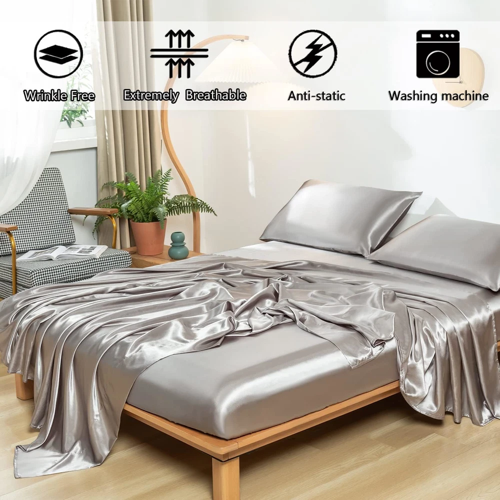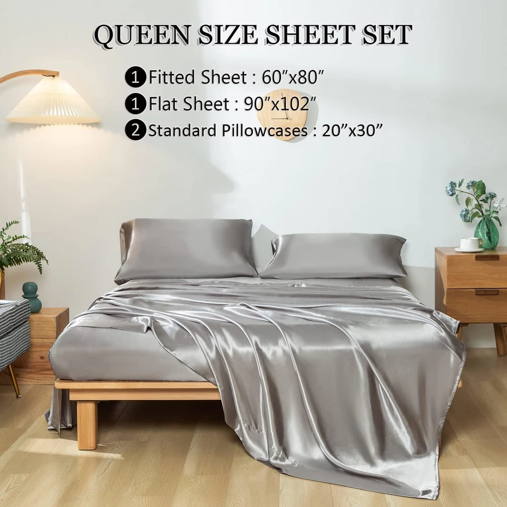 Fast Shipping Great Customer Support Satisfaction Guaranteed DESCRIPTION Shipping Shipping Shipping All domestic packages are shipped for Free (Unless other shipping method was selected during the checkout) Most items ship and arrive much sooner than the estimate delivery date. Usually within 2-3 days from payment. However, we have longer estimates to compensate for the occasional delay or supply chain breakdown. We do not accept P.O. BOXES - PLEASE PROVIDE A PHYSICAL ADDRESS Return Return Return In the event that you would like to return your purchase, we allow returns that are processed within the defined return date (the return date is to be found in the return policy/shipping and handling section) Please contact us for a return authorization and the return shipping address. Payment Payment Payment PayPal is our preferred method of payments it's the quickest, easiest and most secure way to pay for your goods or services online. PayPal offers buyer and seller protection should there be a problem. If you do not have a PayPal account, to get started and buy your first item with us is very easy. Simply click on the 'Buy It Now' button and follow the eBay checkout steps. Select PayPal as the payment method you then will be given the chance to enter your card details in to PayPal's secure checkout in order to pay for your order. Once the payment has been made, you will then be given the opportunity to make your own PayPal account to make paying for your items in the future very easy. Should there be a problem with payment please do let us know. Feedback Feedback Feedback Customer satisfaction is very important to us. If you have any problem with your order,please contact us and we will do our best to make you satisfied, please do not leave a negative feedback before we resolve your problem. We guarantee that your issue will be solved quickly. As long as you are happy with your purchase of , please leave us a positive feedback. Your feedback is very important to us it affects our search placement on eBay. We will leave a positive feedback for you in return automatically once we receive your feedback. Contact Us Contact Us Contact Us If you have any queries, please contact us via ebay. We usually respond within 24 hours on weekdays. Thank you for visiting our ebay store! 💎Reasons for Choosing us💎Revdomfly's upgraded fabric after thousands of tests can better balance the body temperature; It can absorb most of the heat in summer, so that you can still feel as cool as ice in hot summer;In winter, the temperature can also be locked on the fabric;At the same time, It can also absorb moisture, keep you cool and dry all night, which is the gospel of the people with night sweats; There is no perfect satin sheets, only Revdomfly that is infinitely close to perfection 💎Don't be Fooled by Its Gorgeous Appearance💎Do you think the more beautiful things are, the more they need to be taken care of? Revdomfly has successfully passed tens of thousands of washing machine washing tests and sharp object friction tests; Truly excellent Satin sheet sets stand the test;You can toss around on the bed without worry that the sheet set will be scratched by you; This sheet set is Wrinkle and Fade resistant;Just wash it in cold water with a washing machine;Do not bleach Reasons for Choosing Revdomfly Revdomfly's upgraded fabric after thousands of tests can better balance the body temperature; It can absorb most of the heat in summer, so that you can still feel as cool as ice in hot summer;In winter, the temperature can also be locked on the fabric;It's really warm in winter and cool in summer; At the same time, It can also absorb moisture, keep you cool and dry all night, and eliminate bad sleep experience, which is the gospel of the people with night sweats International products have separate terms, are sold from abroad and may differ from local products, including fit, age ratings, and language of product, labeling or instructions Queen Size Silky Soft Gray Satin Sheet Set, 4 Pcs, Fits 16" Deep Pocket Click here to see description Fast Shipping Great Customer Support Satisfaction Guaranteed DESCRIPTION Shipping All domestic packages are shipped for Free (Unless other shipping method was selected during the checkout) We ship within two business days of payment, usually sooner Standard FREE shipping takes between 3-5 business days Expedited shipping takes between 2-3 business days Overnight shipping takes between 1-2 business days We do not accept P.O. BOXES - PLEASE PROVIDE A PHYSICAL ADDRESS We Ship Globally using ebay's GSP, the item is sent to a logistic center in KY and shipped from there to the rest of the world. International customers are responsible for all duties and taxes Contact your local authority for questions related to the amount of duties or taxes you will be responsible for Return In the event that you would like to return your purchase, we allow returns that are processed within the defined return date (the return date is to be found in the return policy/shipping and handling section) Please contact us for a return authorization and the return shipping address. Please contact us for a Return Merchandise Authorization (RMA) number. We advise you to use a reputable carrier service when returning your goods. Please pack all returns appropriately. We ship globally Via eBay's global shipping program (GSP). Thus we don't cover returns for items shipped globally. Buyers returning such items will be refunded ONLY for the item's cost and not for the shipping. please check the Voltage information and make sure it matches the one in your country. In case it's not stated in the description, do ask us. Payment PayPal is our preferred method of payments it's the quickest, easiest and most secure way to pay for your goods or services online. PayPal offers buyer and seller protection should there be a problem. If you do not have a PayPal account, to get started and buy your first item with us is very ea