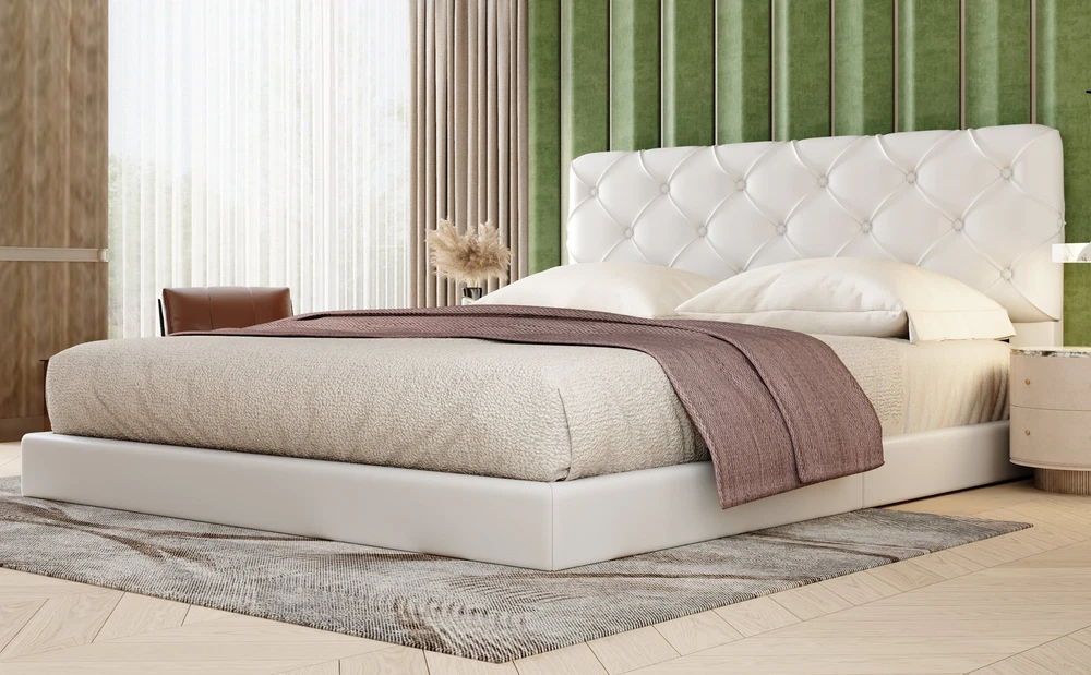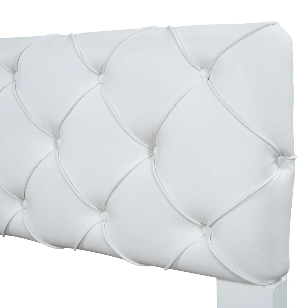 Brand Unbranded Item Length 64.17 Item Width 20.87 Item Height 10.63 Color White Frame Material Upholstered Type BED FRAME Compatible Mattress Size As described Diamond-ring-1 Simple life Queen Size Tufted Upholstered Platform Bed, White [Upholstered Platform Bed] Elegant style upholstered in carefully-selected PU leather, features stitching details, this bed not only suits any home décor, but is timeless in its design. [With Headboard] The foam-filled upholstered headboard provides a more comfortable and safe sleep. Tufted design adds a premium feel to your room. [Sturdy Construction] Constructed of solid pine wood+MDF frame, this platform bed features a sturdy high quality solid wood construction for durability and high load capacity, ensuring longevity. [No Box Spring Required] The wood slats support the mattresses not to slide and increase the service life. Queen Size Tufted Upholstered Platform Bed, White With a modern look and a touch of simple style, this bed combines fashion and function. This designed foundation is crafted from solid wood with a uniquely detailed headboard featuring PU leather upholstery grain that’ll steal the show in any setting. It is designed with slat support system that will prevent sagging for years to come. Simple and elegant, the upholstered bed will make a lasting impression in your room. Description Material Wood+MDF+PU Leather Size Queen Color White Numbers of Package 1 Spring Box No need Assembly Required Yes Origin Vietnam Dimensions Overall Product Dimension 85.5''L x 61''W x 34.8''H Queen Bed 79.5'' x 55.9'' Total Height 34.8'' Number of Bed Slats 10pcs Recommend Mattress Thickness of Bed 8''-10'' Overall Product Weight 86.5lbs Bed Weight Capacity 500lbs Item Specifics Brand Unbranded Item Length 64.17 Item Width 20.87 Item Height 10.63 Color White Frame Material Upholstered Type BED FRAME Compatible Mattress Size As described Payment Returns Diamond-ring-1 Simple life DESCRIPTION PAYMENT SHIPPING RETURN POLICY CONTACT US Shop Category Store Home Other Hot Item Delivery New List Item Help & Info Payment Policy Shipping Policy Return Policy FAQ About Us Queen Size Tufted Upholstered Platform Bed, White [Upholstered Platform Bed] Elegant style upholstered in carefully-selected PU leather, features stitching details, this bed not only suits any home décor, but is timeless in its design. [With Headboard] The foam-filled upholstered headboard provides a more comfortable and safe sleep. Tufted design adds a premium feel to your room. [Sturdy Construction] Constructed of solid pine wood+MDF frame, this platform bed features a sturdy high quality solid wood construction for durability and high load capacity, ensuring longevity. [No Box Spring Required] The wood slats support the mattresses not to slide and increase the service life. Queen Size Tufted Upholstered Platform Bed, White With a modern look and a touch of simple style, this bed combines fashion and function. This designed foundation is crafted from solid wood with a uniquely detailed headboard featuring PU leather upholstery grain that’ll steal the show in any setting. It is designed with slat support system that will prevent sagging for years to come. Simple and elegant, the upholstered bed will make a lasting impression in your room. Description Material Wood+MDF+PU Leather Size Queen Color White Numbers of Package 1 Spring Box No need Assembly Required Yes Origin Vietnam Dimensions Overall Product Dimension 85.5''L x 61''W x 34.8''H Queen Bed 79.5'' x 55.9'' Total Height 34.8'' Number of Bed Slats 10pcs Recommend Mattress Thickness of Bed 8''-10'' Overall Product Weight 86.5lbs Bed Weight Capacity 500lbs Item Specifics Brand : Unbranded Item Length : 64.17 Item Width : 20.87 Item Height : 10.63 Color : White Frame Material : Upholstered Type : BED FRAME Compatible Mattress Size : As described Payment Returns All rights reserved.