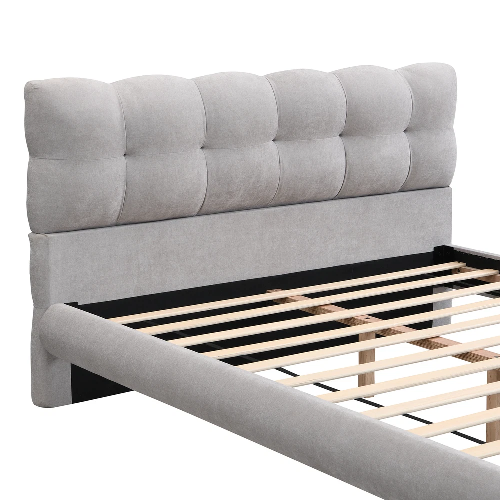 Brand Unbranded Item Length 67.5 Item Width 21.75 Item Height 9.50 Color Grey Frame Material Boucle Type BED FRAME Compatible Mattress Size As described Diamond-ring-1 Simple life Queen Size Upholstered Platform Bed Frame with Cookie-Shaped Soft Headboard, Easy Assembly, high-quality construction,Grey-partB [Modern Design] Enveloped in soft and comfortable fabric, this bed showcases a trendy and distinctive cookie-shaped headboard. The grey hue and modern design render it suitable for diverse home decor styles. Available in three sizes: FULL, QUEEN, and KING. [Comfortable Material] The carefully chosen fabric combined with sponge filling offers a luxurious feel and guarantees a cozy sleeping experience. [Rubber Wood Support Feet] Constructed with rubber wood support feet, this bed provides stable and dependable support. [12 Slats and 3 Central Support Feet] Equipped with 12 slats and three central support feet, this platform bed offers exceptional stability and safety. [Sturdy and Durable] With its high-quality construction and solid materials, this bed is built to endure, ensuring long-term usage. Item Specifics Brand Unbranded Item Length 67.5 Item Width 21.75 Item Height 9.50 Color Grey Frame Material Boucle Type BED FRAME Compatible Mattress Size As described Payment Returns Diamond-ring-1 Simple life DESCRIPTION PAYMENT SHIPPING RETURN POLICY CONTACT US Shop Category Store Home Other Hot Item Delivery New List Item Help & Info Payment Policy Shipping Policy Return Policy FAQ About Us Queen Size Upholstered Platform Bed Frame with Cookie-Shaped Soft Headboard, Easy Assembly, high-quality construction,Grey-partB [Modern Design] Enveloped in soft and comfortable fabric, this bed showcases a trendy and distinctive cookie-shaped headboard. The grey hue and modern design render it suitable for diverse home decor styles. Available in three sizes: FULL, QUEEN, and KING. [Comfortable Material] The carefully chosen fabric combined with sponge filling offers a luxurious feel and guarantees a cozy sleeping experience. [Rubber Wood Support Feet] Constructed with rubber wood support feet, this bed provides stable and dependable support. [12 Slats and 3 Central Support Feet] Equipped with 12 slats and three central support feet, this platform bed offers exceptional stability and safety. [Sturdy and Durable] With its high-quality construction and solid materials, this bed is built to endure, ensuring long-term usage. Item Specifics Brand : Unbranded Item Length : 67.5 Item Width : 21.75 Item Height : 9.50 Color : Grey Frame Material : Boucle Type : BED FRAME Compatible Mattress Size : As described Payment Returns All rights reserved.