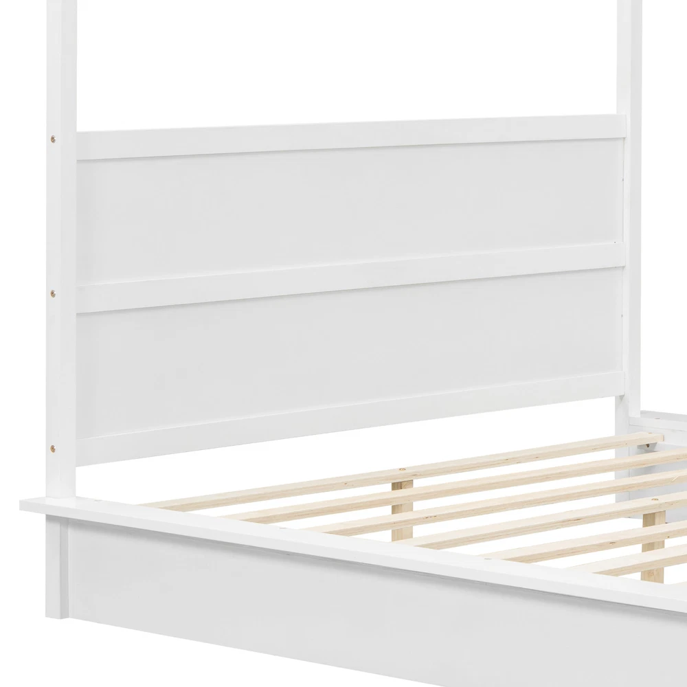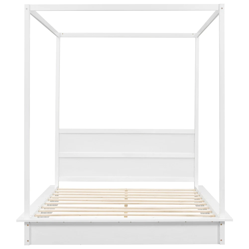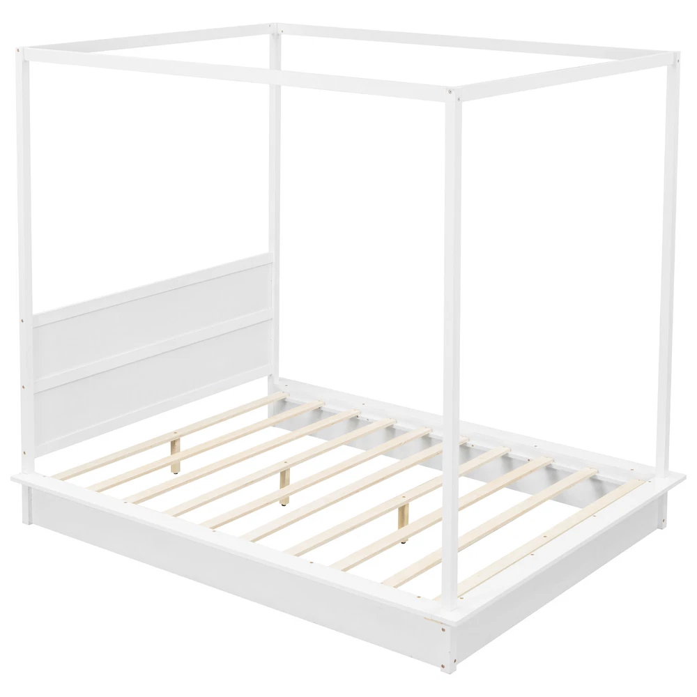 Queen Size Wood LED Canopy Bed ,Canopy Platform bed With Support Slats, No Box S