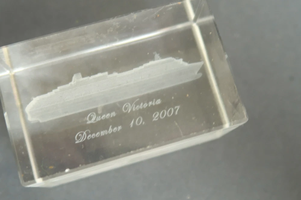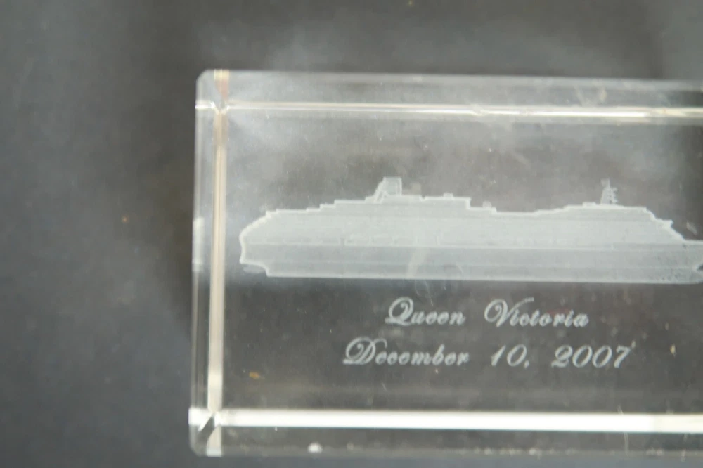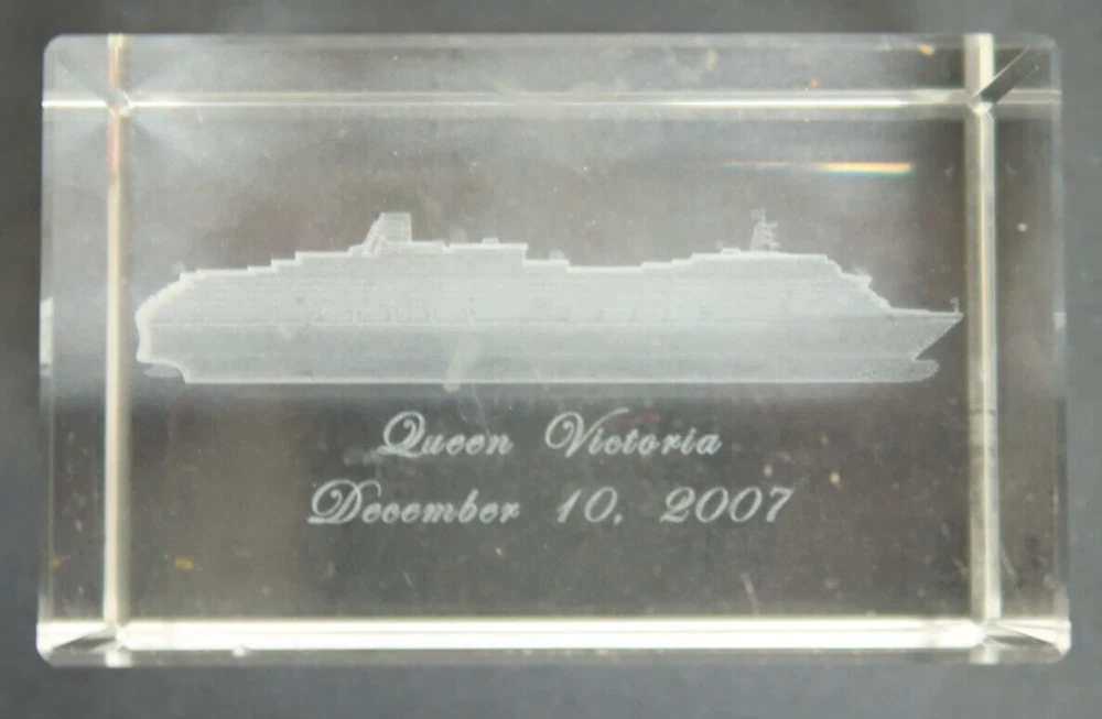 Hello and Welcome! This listing is for: Queen Victoria 2007 Cruise Ship Glass Cube Etching Souvenir Gift Shop Item. This item is in good to decent overall condition, it has some light wear but overall it's in good condition. There are some small scuff marks and smudges on the item, but they might be able to come off. This cube is 2 inches tall and 3 inches wide. Shipping: Your item will be well packaged and bubble wrapped for maximum protection during transit. Terms of Sale: This item will ship out within 1 business day of payment completed. We do offer refunds should this item not be what you needed. Contact Us: Should you have any questions please do not hesitate to write and ask us. 5 Star Service: We also strive to maintain our 5 star service, should you have any issues with this item please write us first and we will work out the issue immediately.