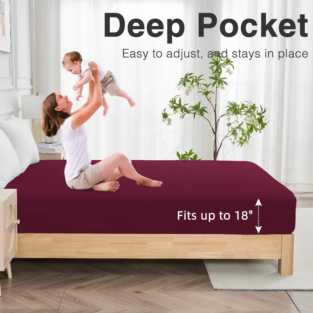100% WATERPROOF MATTRESS PROTECTOR: The back of the queen size waterproof mattress protector is upgraded with waterproof TPU material, which can better protect the mattress from liquids, bedwetting and stains, prolonging the service life of the mattress, and keeping your bed dry and stain-free for a long time.No more struggling with accidents. SOFT BREATHABLE MATTRESS PROTECTOR: The front material of the mattress protector is made of polyester fabric, which has excellent breathability and allows air and heat to pass through, which can effectively reduce the temperature of the mattress and ensure that the mattress is soft breathable, which can keep it dry all night long, and bring refreshing to the hot summer days. DEEP POCKET MATTRESS PROTECTOR: The queen waterproof fitted sheet fits all types of mattresses including memory foam mattresses, latex mattresses or spring mattresses. The deep, expandable pockets are designed to not only fit any mattress up to 18'' deep, but also to fit securely to the mattress, ensuring that the mattress cover won't slide around and make noise as you toss and turn. MACHINE WASHABLE MATTRESS PROTECTOR: The waterproof mattress cover queen size bed can be machine washed and tumble dried on low temperature, just put it in the washing machine and wash our queen mattress cover with bleach free detergent. Do not dry clean, iron or bleach.Follow the specific washing instructions on the label. NOISELESS MATTRESS COVER: The soft and breathable surface material of the mattress protector can reduce the annoying noise brought by the bed sheet, no plastic feeling or crumpling sound when you turn over, allowing you to enjoy the quietness without changing the touch of the mattress, providing you with a restful sleep and bringing you the best nighttime sleep experience. THE PERFECT CHOICE: The queen mattress cover waterproof can provide a more comfortable sleeping environment for you and your family. It is the best choice for toddlers, children, pregnant women, pets or seniors suffering from incontinence.If you have any questions about the waterproof mattress cover, please contact us and we will reply you within 24 hours.