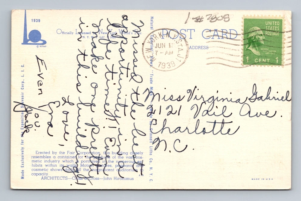 Queens NY-New York, Aerial Cosmetics Building, Vintage c1939 Postcard