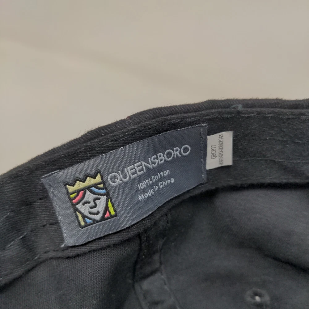 Queensboro Slideback Hat One Size Black Embroidered Print Vent Holes Condition: This Queensboro Hat has no stains or rips! Sold as pictured, thanks for looking! - See Multiple Items You Like? We Can Do Bundle Shipping! -We ship items out EVERY BUSINESS DAY so EXPECT a QUICK delivery! -Please feel free to ask any questions you may have we answer most questions instantly! -Thank you for supporting Red Frog Goods! 2-1.10