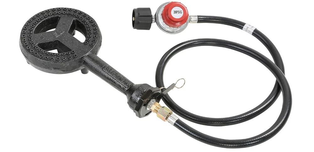 Quemadores de gas quemador para gas de 6 inches alta presión con manguera Size Burner Head with Regulator Hose Color Black Top Material Type Cast Iron Finish Type Powder Coated Instrument Banjo Operation Mode Manual Number of Strings 4 Manufacturer Concord Cookware UPC 877769007300 About this item High Pressure 6" Diameter Universal Burner Head, The Banjo Jr. Capable of putting out up to 60,000 BTU Heavy Duty Cast Iron, Built To Last. Weighs 3.5 LB Comes with Built-in Legs for Stand Alone Support or Unit is Mountable Set Includes: 4 foot High Pressure Regulator Hose Size: 6" Diameter 12.5" Length 2.5" height