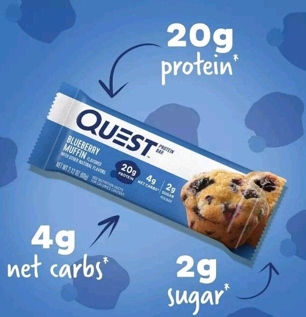 UPC:Does not applygtin13:Does not applyFlavor:blueberryFeatures:Gluten-Free, High Protein, Low CarbIngredients:BlueberryFormulation:BarBrand:QuestMain Purpose:Bodybuilding, Endurance/Energy, Meal ReplacementSupply:Up to 1 MonthMPN:naType:BarCountry/Region of Manufacture:United StatesDosage:60 gExpiration Date:10/09/25Item Weight:8.5 ozWhen to Take:After Meal, After Workout, Before Meal, Before Workout, During WorkoutDepartment:Men, Unisex, WomenActive Ingredients:Blueberry, ProteinType of Diet:Bodybuilding, Fitness, Gluten-FreeNumber of Pills:na