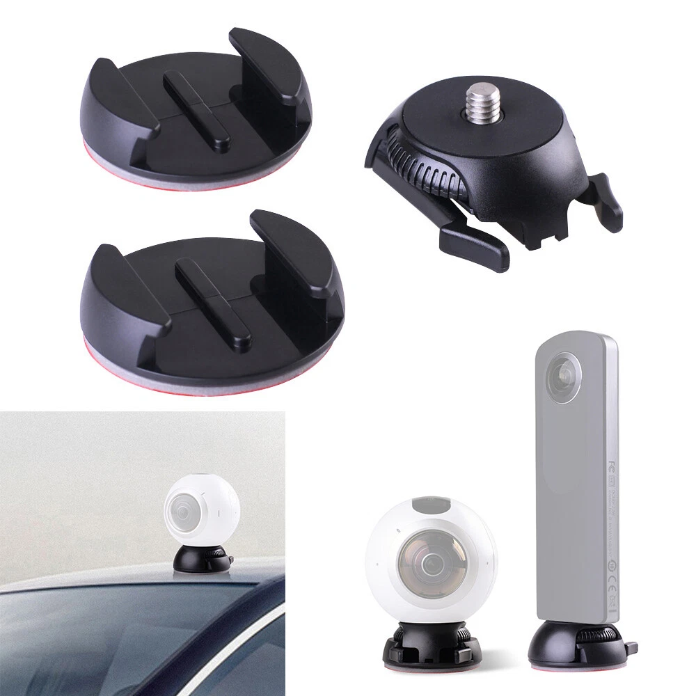 Wanna stick your valuable action camera/panoramic camera on flat surface, but worry about the unexpected fall off? This buckle mount & flat mount combination is here for help. Strong adhesive tape can stick to flat surface such as car surface, helmet, enamel tile, table & etc securely! Buckle & knob design make it convenient for installation & removal. Features: Accessory replacement for Samsung Gear 360 Camera, Ricoh Theta S/SC/M15 & other action/panoramic camera with 1/4" socket. Strong adhesive tape can stick securely to flat surface such as car, helmet, enamel tile, table & etc. The buckle mount combine with the flat mount perfectly , and can be removed easily. Buckle mount with a knob for safe and easy installation of camera. Specifications: Screw Type: 1/4" Compatibility: Replacement for Samsung Gear 360 Camera, Ricoh Theta S/SC/M15 & Other Action Camera/Panoramic Camera with 1/4" Socket Item Weight:30.5g / 1.1oz (All subject) Package Size: 8 * 4.5 * 2.5cm / 3.1 * 1.8 * 1.0" Package Weight: 33.5g / 1.2oz Package List: D4437 1 * Quick Release Bucket 2 * Flat Mount w/ Adhesive Tape Note: Camera is for reference only and is not included.