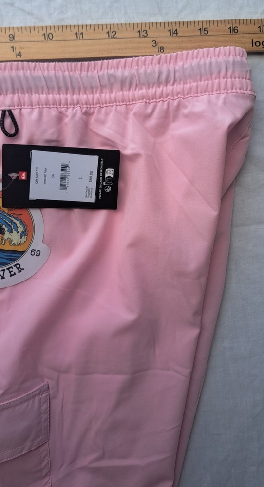 Quicksilver Men’s Volly Swim Shorts, Lined, Size Large Pink With Logo $80 Tag