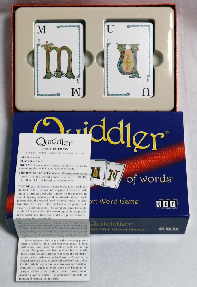 Enjoy the fun of short words with the Quiddler Card Game! This short word game is perfect for 2-8 players aged 8 and up. The game includes a deck of cards with letters and point values, making it easy to get started. This game is sure to keep you entertained for hours. The game is complete and comes from Set Enterprises, a trusted brand in the industry. So why wait? Start playing Quiddler today! This game is an excellent game for younger folks, as it can help with learning (spelling and mathematics), while having fun. Learning can be a bit painful sometimes, but not with this game. It's fun all around! Each item is carefully packaged to prevent any damage and is shipped immediately with tracking.