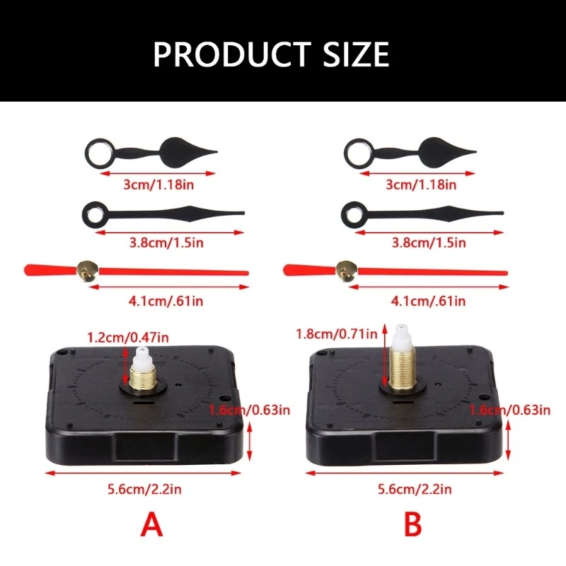 Features: Experience precises timekeeping with the Quartzs Clock Mechanism Kits, great to maintain accuracy over extended periods without frequent adjustments, ensuring your clock run smoothly. from quality plastic, this quiet quartzs clock movement is easy to install and replace, fitting most traditional wall clock seamlessly, making it great for DIY enthusiasts. Great for clock hobbyists and DIY enthusiasts look to enhances their projects, as well as family seek to upgrades home or office clock with a focusing on practicality and aesthetic. Great for enhancing the ambiances of living room, bedrooms, and studies, this clock mechanism also suits office environment like meeting room, where reducing noise and improving efficiency. Transforming your space with this clock mechanism replacement, offering both functionality and styles, while its clock hands add a unique touch to any decors. Specifications: Component: Plastic Color: As pictures shown. Optional Shafts Length: 12mm/0.47in; 18.5mm/0.73in Size: As pictures shown. 12mm Shafts Length: Thread: 5mm/0.20in; Suitable for Panel: less than 4mm 18.5mm Shafts Length: Thread: 11mm/0.43in; Suitable for Panel: less than 9mm Hour Pointers: 30mm/1.18in; Minutes Hand: 38mm/1.5in; Second Hand: 41mm/1.61in Quantity: Set Package Includes: 1Set Clock Movement note: Please allow 0-1cm error due to manual measurement. please make sure you not mind befores you bid. Due to difference between different monitors, the picture may not reflect the actual color the item.