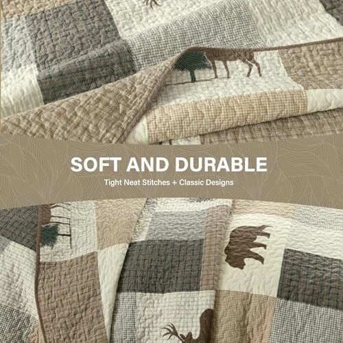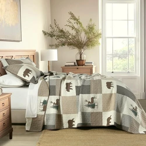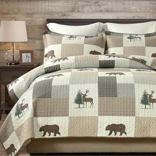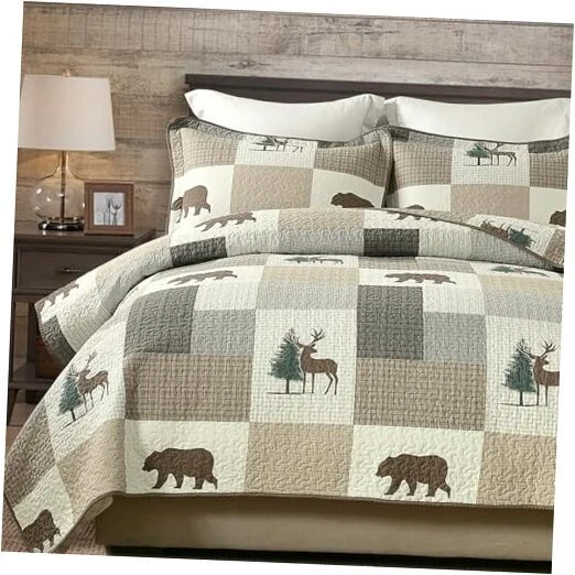 Return Policy Fast Delivery Trusted seller Quilt Queen Size, Queen Quilt Set, 100% Cotton Queen Quilt Bedding Set Bedspreads, Forest Farmhouse Rustic Lightweight Comforter for Queen Bed, All Season, Brown/Gray/Beige, 3-Piece Product Description 100% Natural Cotton: The fabric and filling are made of 100% natural cotton, it is softer and healthier,more breathable and skin-friendly. It is also a good choice for people who are allergic constitution or tend to sweat more when sleeping. Widely Applicable and Decorative: This quilt set of forest farmhouse theme in brown, gray and beige color scheme, both sides are richly designed the same plaid, plant and wildlife patterns, making your room vivid and cozy. This decorative quilt set can easily match the decor of your bedroom, living room, master room, guest room, study, airbnb, dorm and RVs. All-Season Use: The neat and tight stitches ensure long-term use. Three-layer design and the 100% cotton filler inside make this quilt set lightweight but warm, suitable for spring, summer, autumn/fall, winter and can be used as bed blanket, quilt set, coverlet set, bedspread and even comforter set. It can be used alone or be used as one layer of your bed coverings to add extra warmth. 3-Piece Queen Quilt Set Includes: 1 Quilt : 98" x 90" ; 2 Pillow shams : 20" x 28". Care Instruction: Machine Wash separately in cold water, tumble dry low, do not bleach. The quilt will still keep warm and its original shape after washing.If you have pets,the washable quilt is also a good choice. Shipping Returns Payment Shipping Shipping is FREE to all addresses other than APO/PO boxes in the lower 48 states. All our stock ships from US-based warehouses. Shipped via USPS or UPS (depending on location and package weight) Unless stated otherwise, all orders will ship within 24-72 hours of your payment being processed. Check our feedback to see the great reviews of FAST shipping we offer. Returns Seller does not accept returns Payment We currently accept payment via eBay managed payments only. Once payment is cleared, we will dispatch your shipment within 1-3 business days. Please refer to the "Shipping" tab for more information regarding shipping speed to your destination.