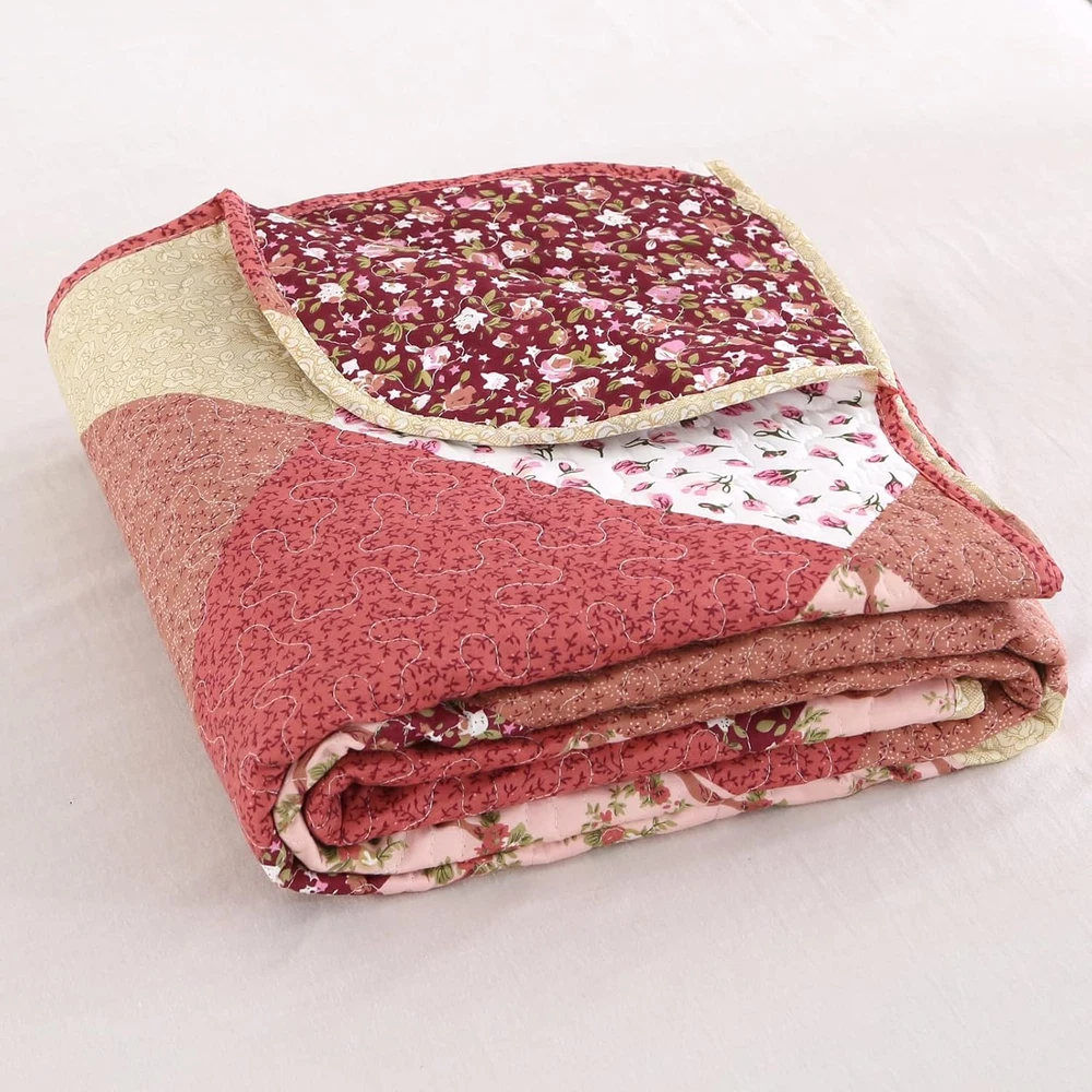 Menu Other Items Feedbacks About Us Contact Us Add To Favorites Quilted Throw Blanket, 59X79 Inch Patchwork Farmhouse Quilt, Soft Microfiber Reversible Multicolor Floral Coverlet, Lightweight Bed Quilt Cover for for Couch Sofa Reversible Quilt: The quilted throw blanket features beautiful vibrant patterns on both sides; The quilted comforter features a multi-color patchwork front in shades such as red, rose red, beige, and orange, adorned with assorted scattered floral prints. Ideal for farmhouse-style bedrooms. Material: This floral quilt is made of 100% Polyester and filled with 100% polyester; softsble, lightweight, skin-friendly Size and Functions: This quilted throw measures 59" x 79", suitable for a twin-size bed, couch, or as a decorative top cover for your bed All Season Use: The quilt blanket is very pretty, lightweight and not too thick; Enough weight to keep you comfortable, yet light enough to keep you from breaking out in sweat Care Instruction: Machine wash separately in cold water; Tumble dry low heat, Do not bleach; No shrinkage, fading, or unravelling in the wash.MIND:The displayed colour may differ from the actual colour due to different settings of the monitor or screen Product description Reversible Quilt Sets, European Gorgeous Red and Pink Floral Pattern Bedspread Bedding Set —— Size Options —— Small Single: Only 1 Quilt 50"x60" or 59"x79" Twin Size: 1 Quilt 68"x86", and 2 Pillow Sham 20"x26" Queen Size: 1 Quilt 90"x98" , and 2 Pillow Sham 20"x26" Remind: (1) Please choose the appropriate size based on the bed's dimensions or intended use. (2) The color of the product may vary due to different dyeing batches or lighting conditions. Multipurpose Quilt Blanket VOICE OF THE CUSTOMER The colors are vibrant , and it's well-made. I also like the way the quilt is stitched, it's lightweight, yet it feels 'just right' temperature-wise. Love this pattern. Just the right weight for summer. I have washed this several times. no shrinking or color fading. It is so soft, lightweight. The pattern is so pretty and brightens up my room. If I get cold, which is rare, I can just add an extra blanket. But this is great for the summer time, and I have been sleeping so much better since I started using it. I absolutely love everything about this quilt! It's an excellent light weight quilt. If you plan on using this in winter in a cold climate, you will definitely need to put warm blankets underneath. The queen size 90"x98" perfect fit for XLong twin bed, which would reach the floor on both sides. It is adaptable to almost any bedroom decor. The fabric feels nice and is a great weight. We don’t use a top sheet and our dogs sleep on it sometimes too so we need to wash it every week. Item Specification Item model number PJRXD-red Included Components 1 Quilt Blanket Style Farmhouse Color Multicolor Pattern Floral Product Dimensions 79 x 59 x 0.99 inches Material Polyester Item dimensions L x W x H 79 x 59 x 0.99 inches Fabric Type Polyester Item Weight 2.46 pounds Theme Floral Size 59"x79" Recommended Uses For Product Indoor Seasons All Product Care Instructions Machine Wash Number of Pieces 1 FREE SHIPPING We are always working hard to ensure your package arrives as soon as possible. Please understand that some factors like weather, high postal traffic, and the performance of shipping companies are outside of our control. We offer free shipping to the lower 48 states. We do not accept P.O. Boxes. Please provide a physical address. If you have a problem or question regarding your transaction please contact us immediately. We will work with you to resolve any problem you may have. Thank you