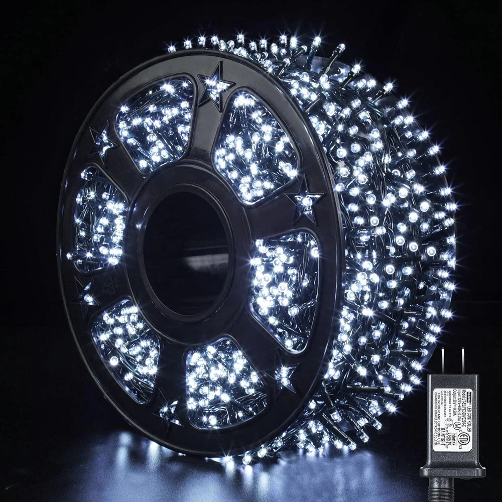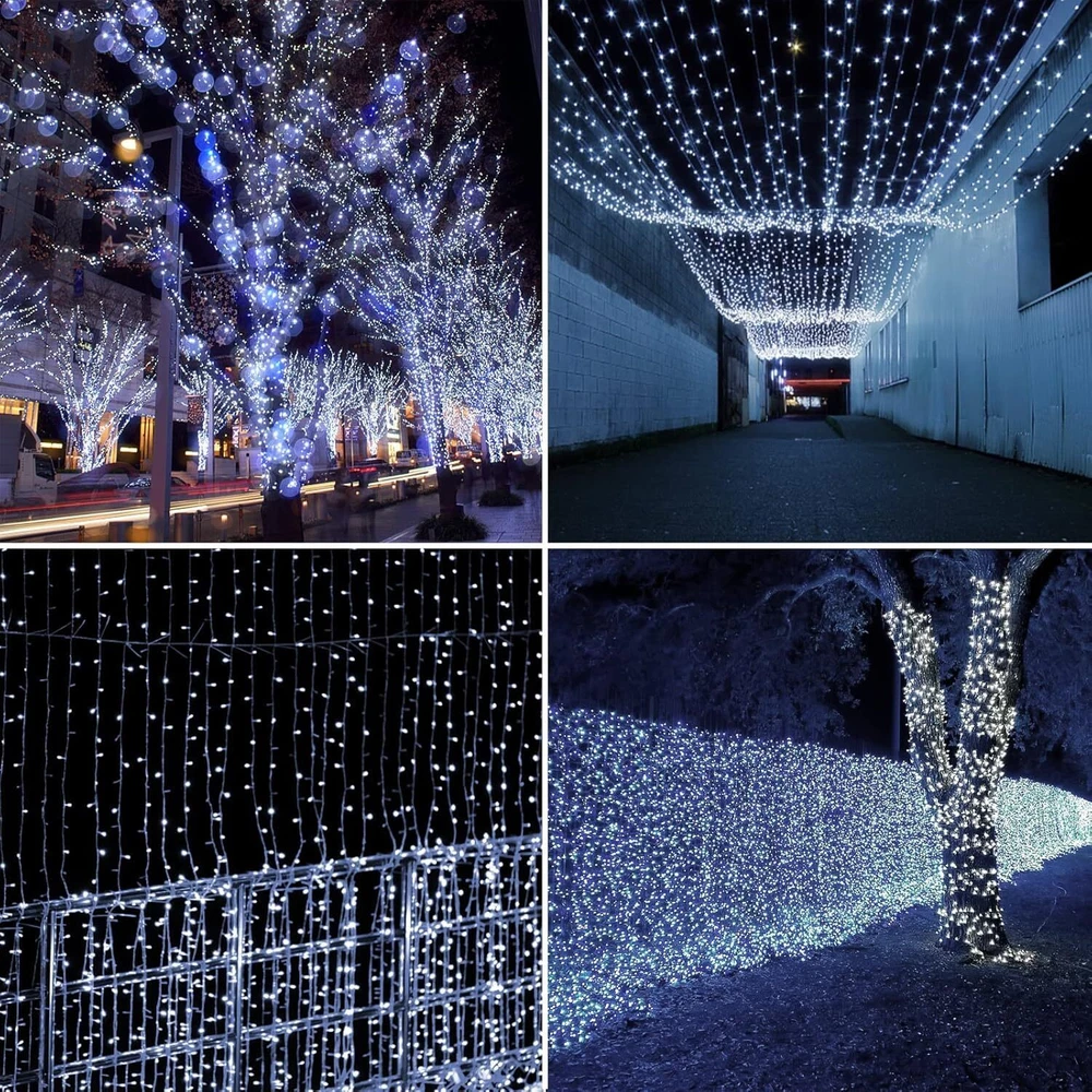 [ 2000 LEDs CLUSTER CHRISTMAS LIGHTS ] Quntis 164ft white LED Christmas tree lights is perfect for spice up your home decoration and add welcome feelings to your party or home. They illuminate a dark corner and create a romantic sentiment. PLS KINDLY NOTE: this LED string lights could not be extended or connected together. [ SAFE USE & COST EFFECTIVE ] This dark green wire Christmas strings made of 100% copper wire, it will not overheat after long-time of usage. Short-circuit protection design would keep your home and family safe. Especially when you have little children in your home, the plug in led Christmas lights with 30V Output Voltage would be your preference. [ 8 FLASH MODES & MEMORY FUNCTION ] This led christmas tree lights with 8 different light patterns (controlled by the button on plug): Combination, In waves, Sequential, Slo-Glo, Chasing/Flash, Slow fade, Twinkle/flash and Steady on. With memorable controller function, the led wire Christmas lights will not change the lighting mode after unplug. [ WATERPROOF & WIDE APPLICABILITY ] WATERPROOF(IP44) Perfect for indoor and outdoor decorations. Quntis 2000 LED christmas lights are flexible for DIY to decor on a party, garland, wedding, garden, patio, window, wall, bedroom, Christmas warm up, doors, floors etc. PLS NOTE: The plug are not waterproof, you need to do some protection. [ PERFECT HOLIDAY DECORATION LIGHTS ] Quntis 64ft 2000leds White Christmas lights come with PLASTIC TRAY so it will never make a mess, easy storage and ready for next use. CE ROHSCE EMCCE-LVDUL 588 CERTIFIED. WORRY-FREE PRODUCT SUPPORT & CAREFREE CUSTOMER SERVICE by contact us, we'd provide a fast and satisfied solution in 24 hours.