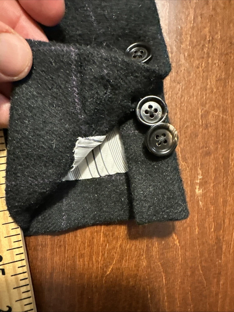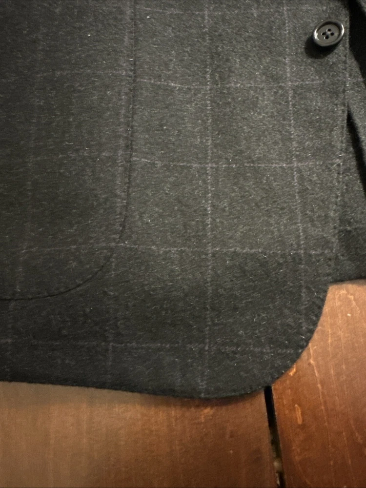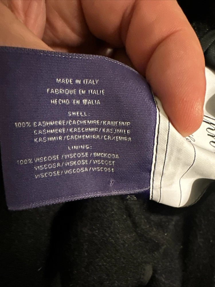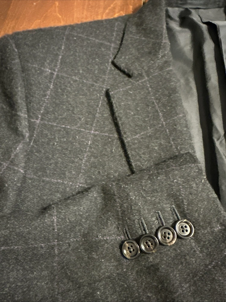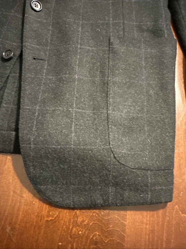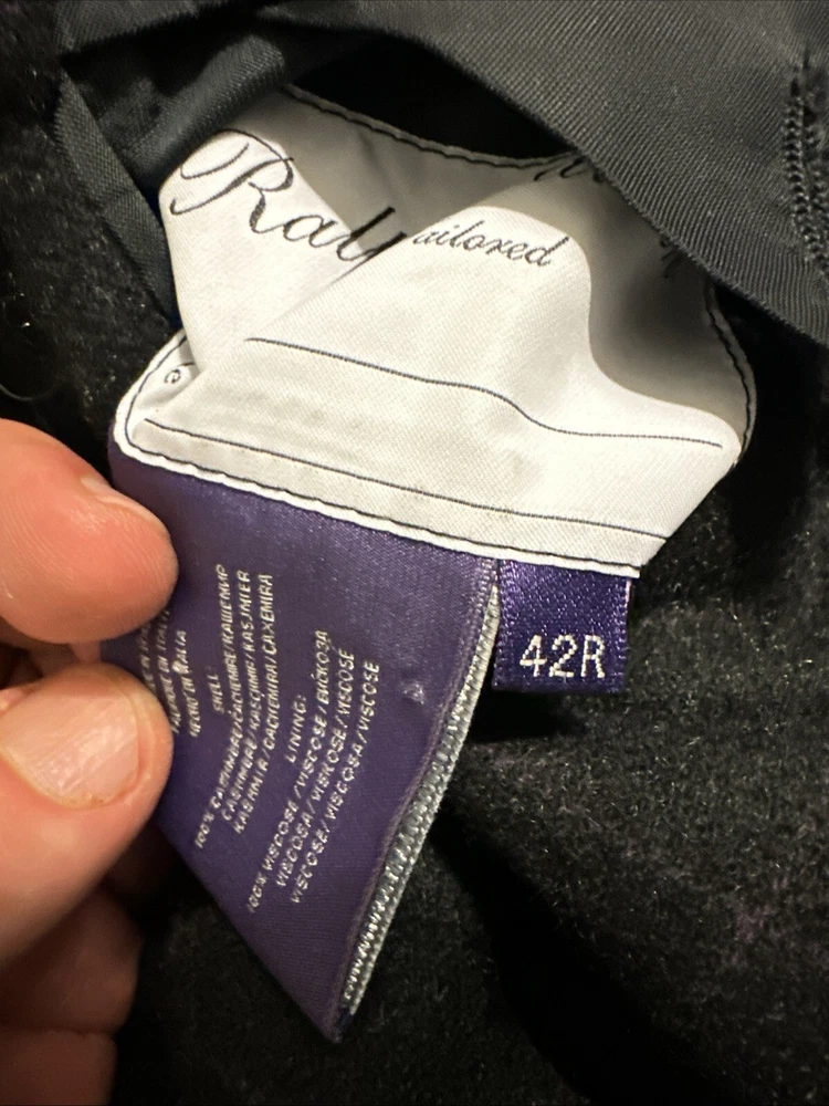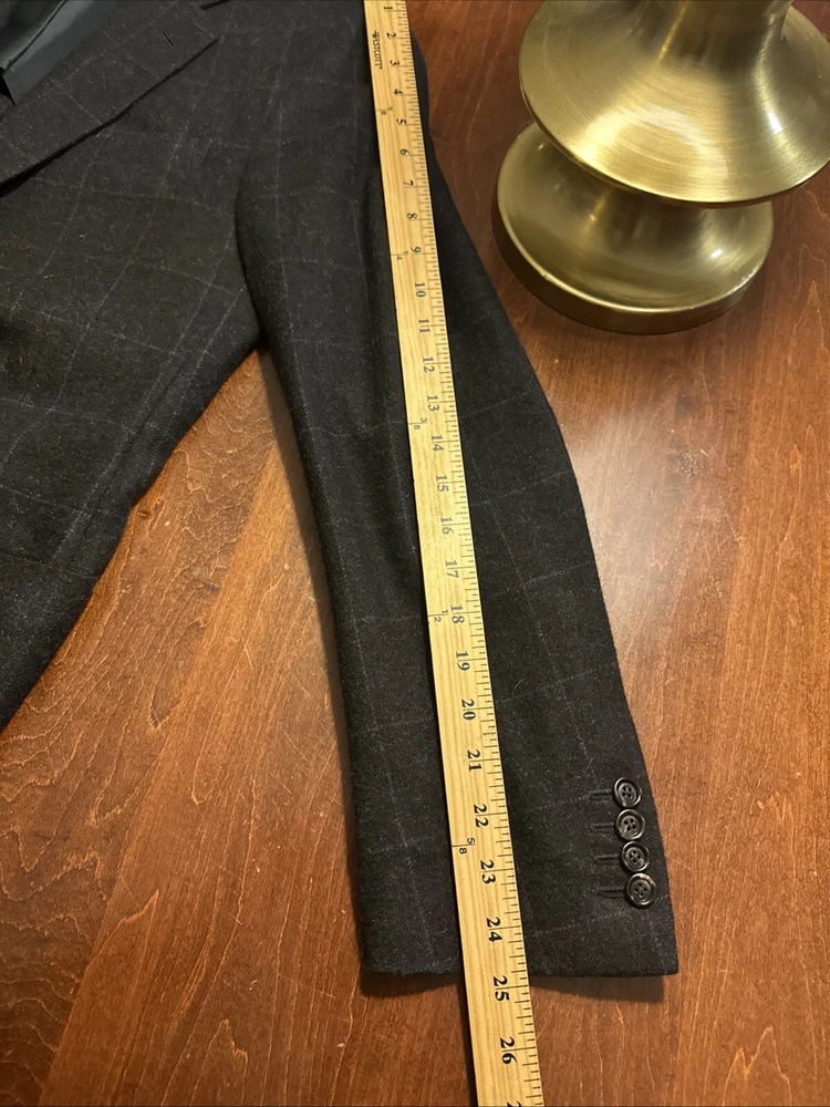 Preowned in excellent condition Ralph Lauren purple label 100% cashmere sport jacket suit, blazer 42R Black in window pane pattern UnStructured Measurements are photographed Sleeve length measured from shoulder seem 25 inches Armpit armpit 21 inches Jacket waist 20 inches Jacket length measured from bottom of collar, 30 inches Shoulder to shoulder 19 inches