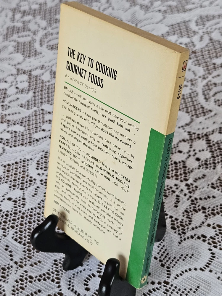 THE KEY TO COOKING GOURMET FOODS BY STANLEY DEMOS A NEW IMPERIAL BOOK ©️ 1963 RARE HARD TO FIND VINTAGE PAPERBACK COOKBOOK VERY GOOD CONDITION FOR AGE SHIPPED WITH USPS 🌲🌲🌲MYRAGGS🌲🌲🌲 ALL PHOTOS OF ACTUAL ITEM WE PACKAGE AND SHIP SAME OR NEXT BUSINESS DAY. MULTI-LAYER PACKAGING TO PROTECT YOUR PURCHASE RECYCLED PRODUCTS MAY BE USED IN THE PACKAGING OF ORDERS SEARCH OUR OTHER LISTINGS!! WE MAY HAVE WHAT YOU'RE LOOKING FOR. WE CONTINUALLY SOURCE UNIQUE AND INTERESTING ITEMS. VINTAGE ANTIQUE BOOKS TOYS TOOLS DOLLS SHOES BOOTS CHRISTMAS ORNAMENTS & DECORATIONS FIGURINES CRYSTAL DISNEY STARBUCKS MUGS MASKS AND FLASKS PHOTOGRAPHY COIN & STAMP COLLECTING PHILATELIC NUMISMATIST CLOTHING MAGAZINES DUNGEONS AND DRAGONS SWAROVSKI BIRTHDAY WEDDING VALENTINES GRADUATION GIFTS MOVIE THEATER SCHOOL PLAY PROPS MATINAL GEOGRAPHIC SOCIETY RARE HARD TO FIND ITEMS AND MUCH MUCH MORE.