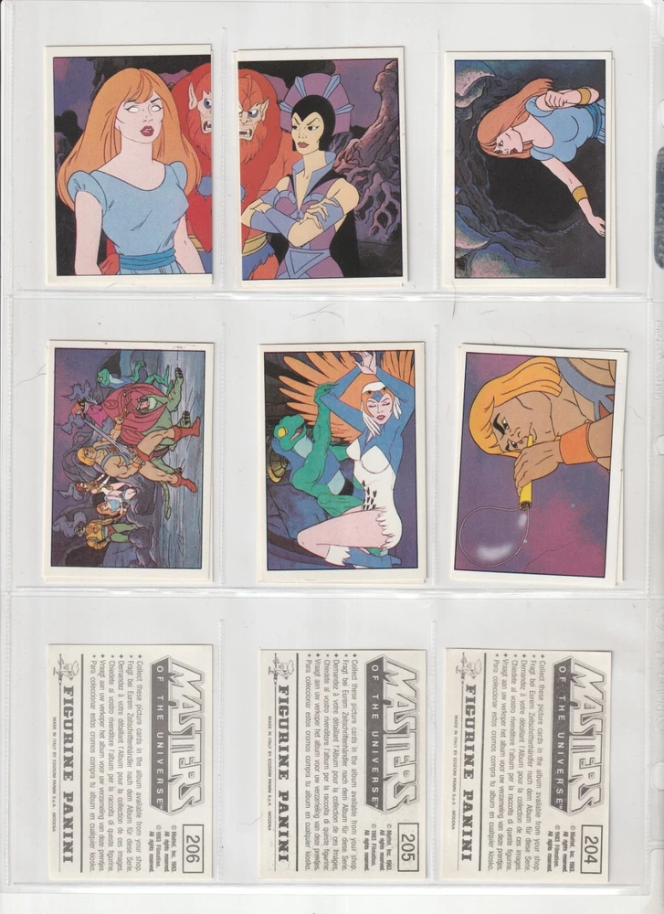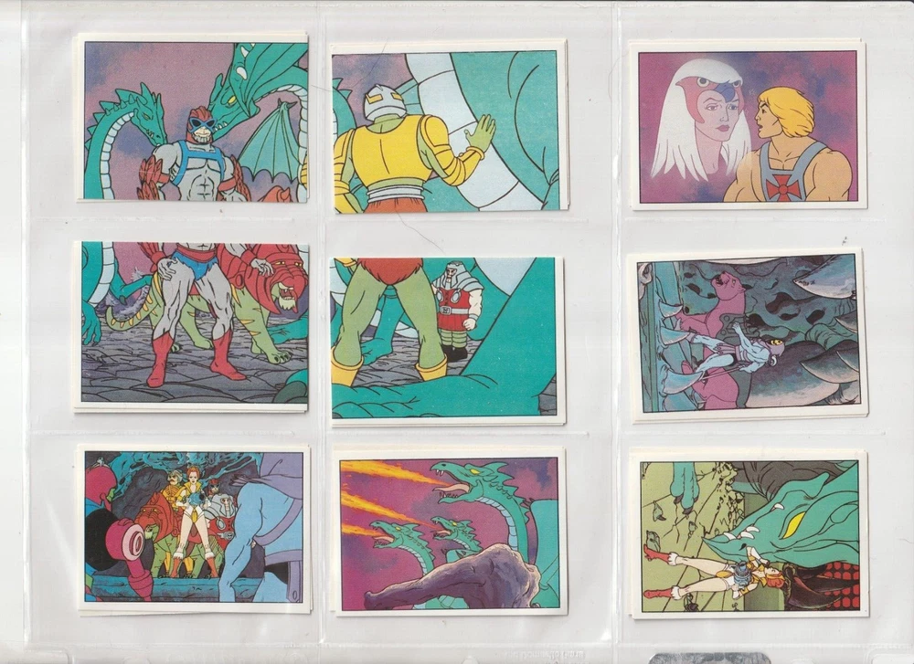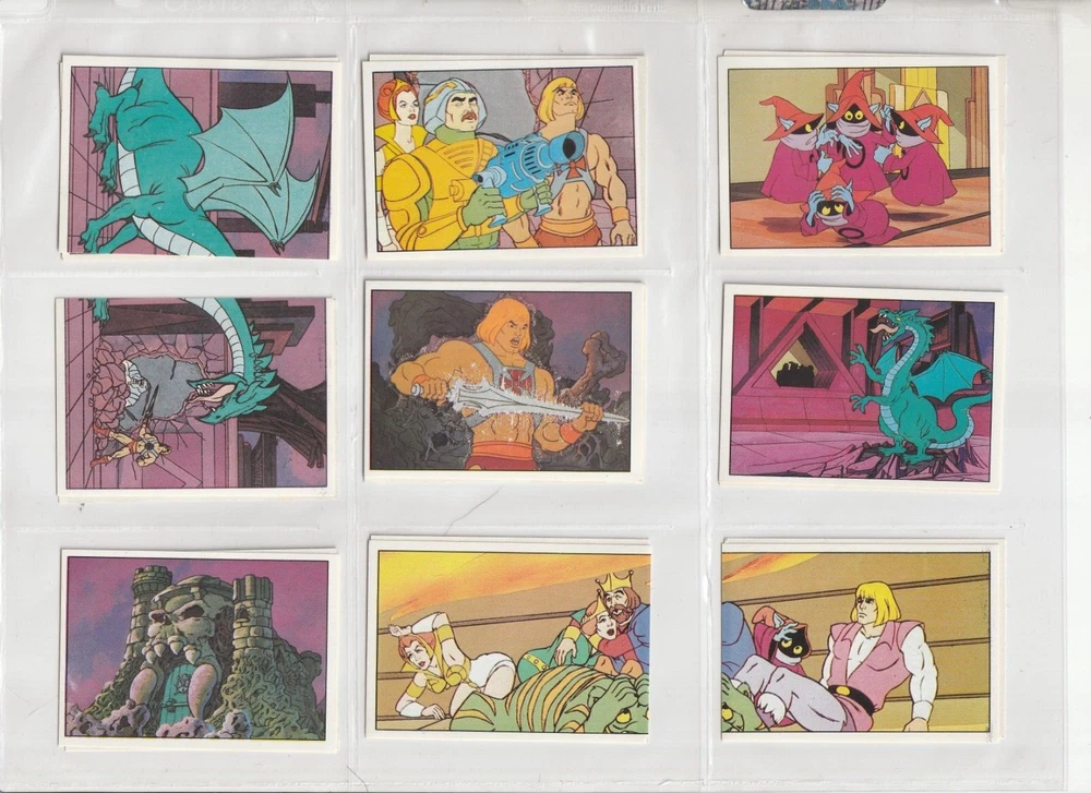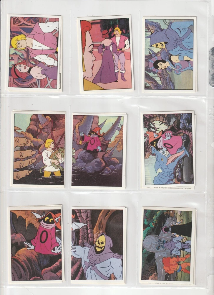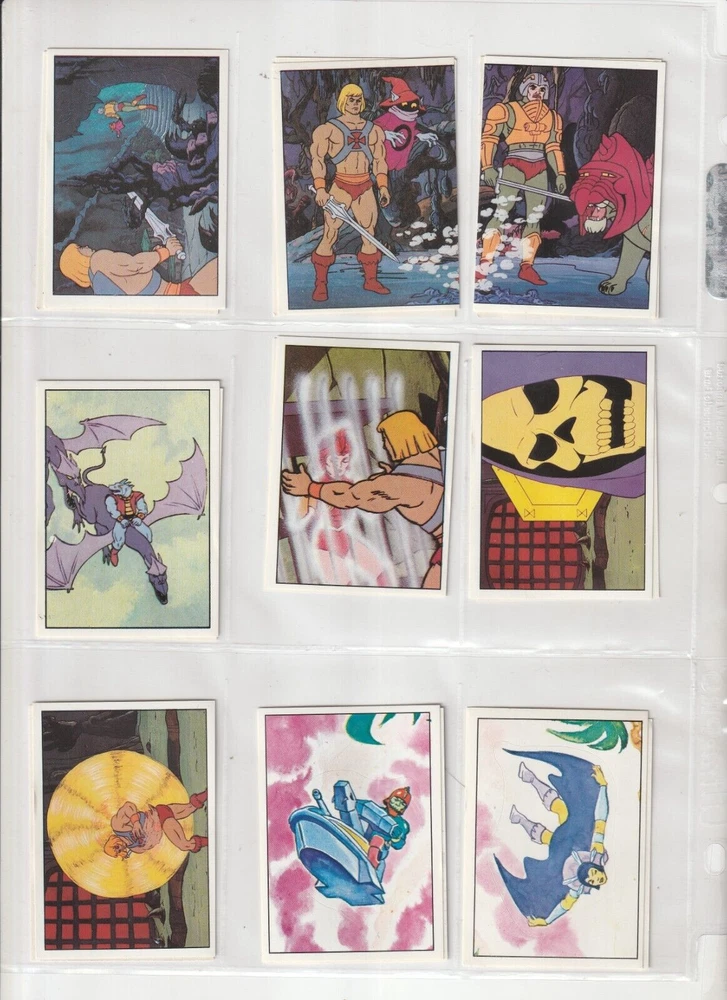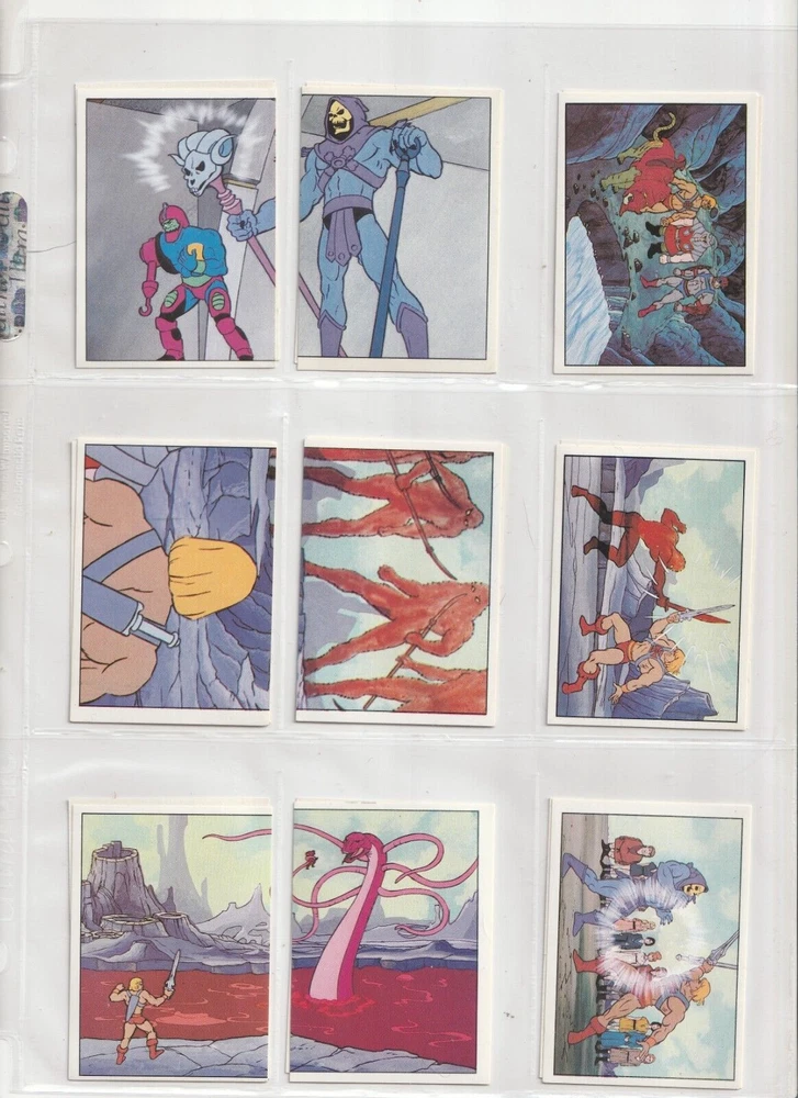 RETURNS ARE NOT ACCEPTED .Read listing carefully, look at pictures, ask questions RETURNS ARE NOT ACCEPTED.PLEASE see scans for condition _______________________________ 💥SO RARE 1983 Panini Masters of Universe MOTU He-Man 100% COMPLETE 216 sticker set with album 💥 these are so nice - they look rack pack fresh album has some wear shipped in sleeves in a binder 💥 SEE high Res SCANS which show actual CONDITION 💥 I will pack well and ship fast! my shipping charge is reflective of how much the USPS charges . ____________________________________________________________ RETURNS ARE NOT ACCEPTED. Read listing carefully, look at pictures, ask questions RETURNS ARE NOT ACCEPTED.PLEASE see scans for condition