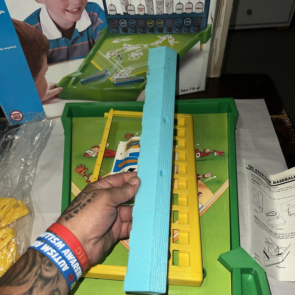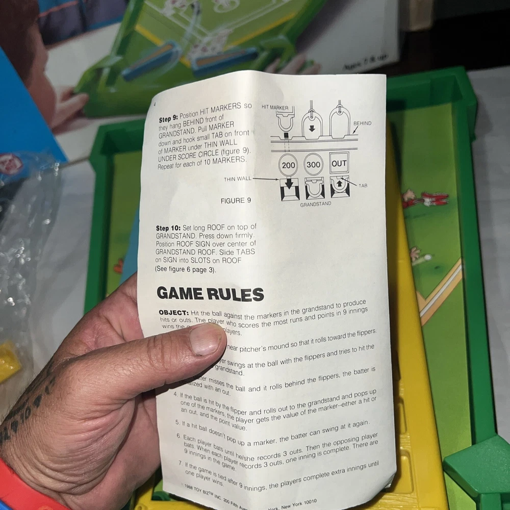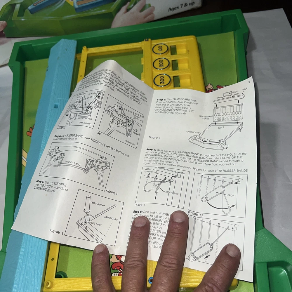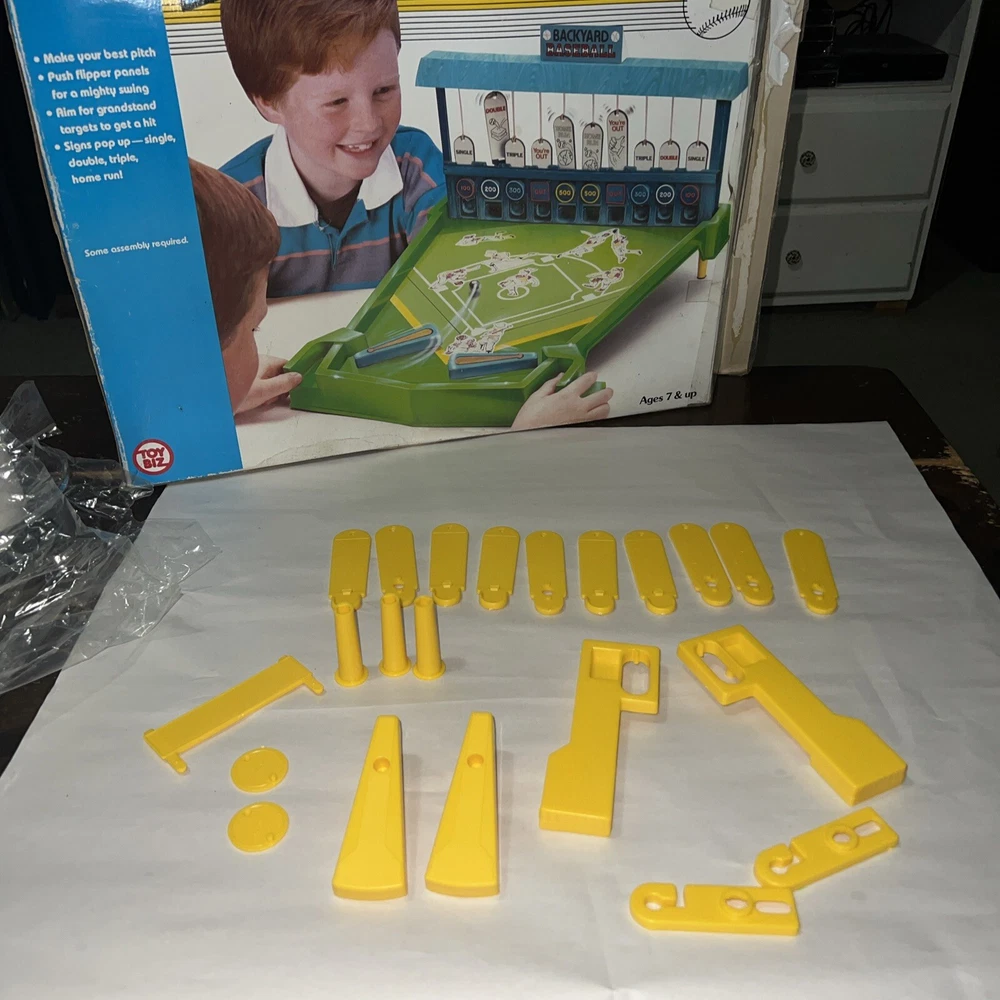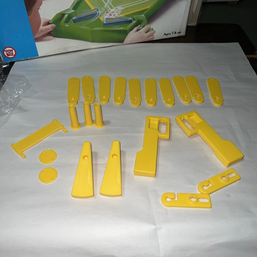 Check out all pictures before you purchase. Any questions just ask. Make sure to check out our store for more Amazing items we find while picking Georgia. My Daughter who is 4 and Autistic loves to go on picks with daddy ( estates, old barns, houses, flea markets etc. It don’t matter we climb and dig thru it all to find treasures to bring to our store. You won’t be disappointed we have a little of everything from A to Z We were invited back to the warehouse and found more VTG toys some boxes were real bad some not so bad etc. ******This item is new old stock one side was kinda tapped so as always we open it up on that side to check it all out. As you can see this item was never played with. Stickers are still on the original factory sticker sheet and all parts have never been clicked together. ( now it’s missing two minor minor things that you can pick up anywhere) Missing rubber bands & one shooter marble probably was a metal one. Besides those easy to get items you have a great VTG game and the original box and paperwork. I could easily sell this in parts alone cause they are new and get double what we are listing it for. But figured why break up a very good game that only needs some rubber bands and one marble