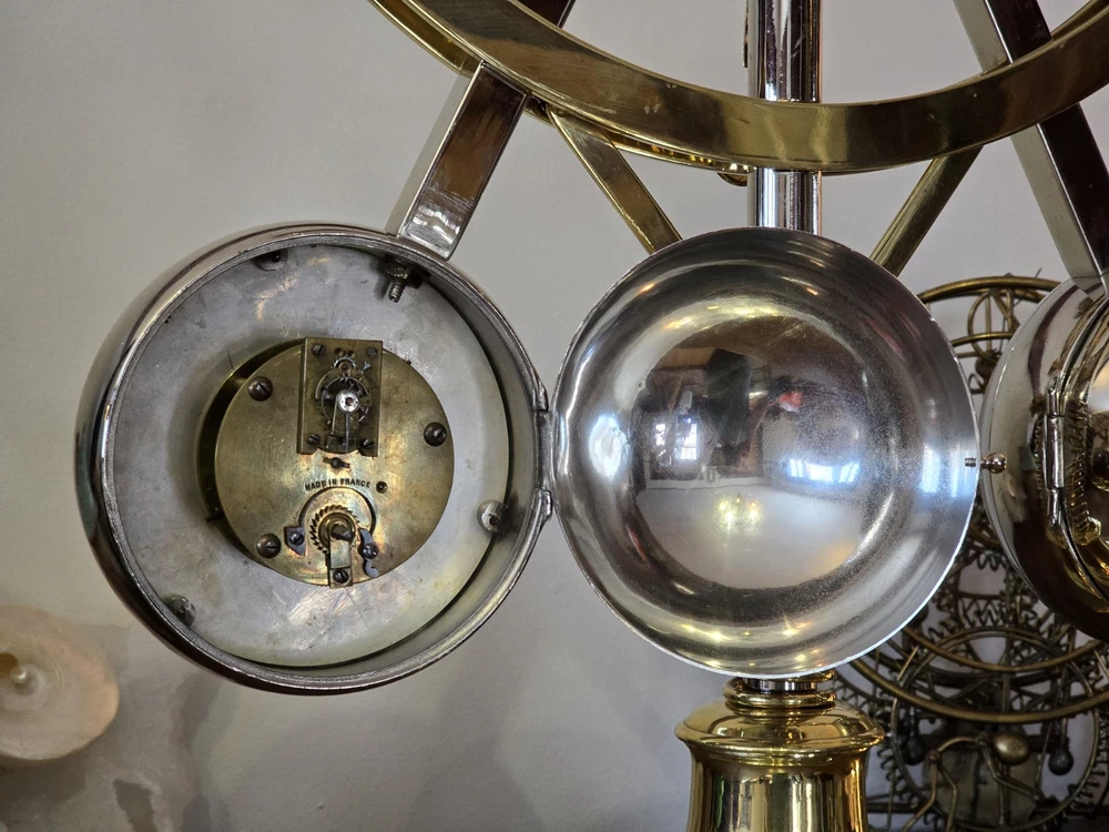 Antique French Industrial Clock – Late Victorian Era – Professionally Restored This lot features a rare late Victorian-era industrial clock, crafted in France with exceptional quality. The clock’s functional governor balls move up and down, controlled by a central spring retainer. The large glass globes over each dial magnify the silvered faces, enhancing its striking visual appeal. The case has undergone a full professional restoration. The brass has been carefully polished and waxed, while the nickel plating was expertly redone by a piano restoration specialist to ensure authentic, period-correct craftsmanship. The original dents and dings were intentionally preserved to maintain the clock’s historical integrity. The movement is an 8-day, time-only, lever-action mechanism. However, the barometer movement is missing, and while we have attempted to source a period-appropriate replacement, we have not yet found one. There are some chips to the edges of the glass, but they do not detract from the overall presentation. A rare and exceptional find, especially in this condition. Condition & Sale Terms: This clock is being sold for decorative purposes only. Mechanical functionality is not guaranteed, and it is sold As-Is, with no warranties or guarantees. Clock Measurements: "L x "W x "T Feel free to reach out with any questions before purchasing INTERNATIONAL SHIPPING NOTE: eBay requires signature confirmation on all purchases over $750, unfortunately due to USPS regulations signature cannot be done on international orders. Any international buyers will need to confirm in writing there approval to send without signature confirmation via ebay messages