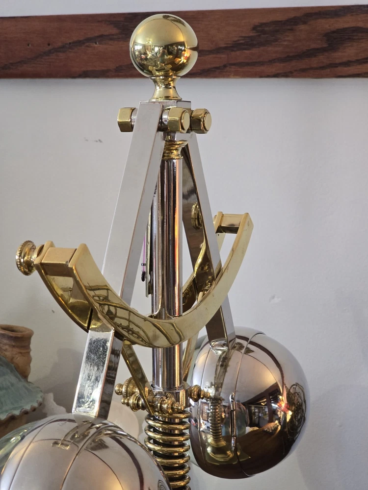 Antique French Industrial Clock – Late Victorian Era – Professionally Restored This lot features a rare late Victorian-era industrial clock, crafted in France with exceptional quality. The clock’s functional governor balls move up and down, controlled by a central spring retainer. The large glass globes over each dial magnify the silvered faces, enhancing its striking visual appeal. The case has undergone a full professional restoration. The brass has been carefully polished and waxed, while the nickel plating was expertly redone by a piano restoration specialist to ensure authentic, period-correct craftsmanship. The original dents and dings were intentionally preserved to maintain the clock’s historical integrity. The movement is an 8-day, time-only, lever-action mechanism. However, the barometer movement is missing, and while we have attempted to source a period-appropriate replacement, we have not yet found one. There are some chips to the edges of the glass, but they do not detract from the overall presentation. A rare and exceptional find, especially in this condition. Condition & Sale Terms: This clock is being sold for decorative purposes only. Mechanical functionality is not guaranteed, and it is sold As-Is, with no warranties or guarantees. Clock Measurements: "L x "W x "T Feel free to reach out with any questions before purchasing INTERNATIONAL SHIPPING NOTE: eBay requires signature confirmation on all purchases over $750, unfortunately due to USPS regulations signature cannot be done on international orders. Any international buyers will need to confirm in writing there approval to send without signature confirmation via ebay messages