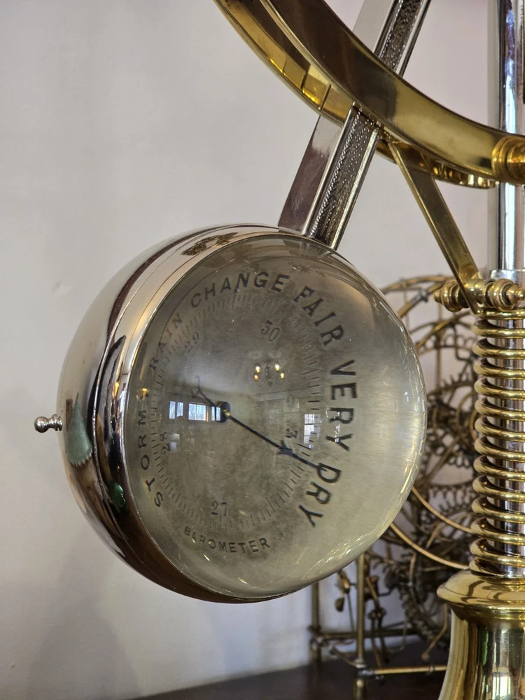 Antique French Industrial Clock – Late Victorian Era – Professionally Restored This lot features a rare late Victorian-era industrial clock, crafted in France with exceptional quality. The clock’s functional governor balls move up and down, controlled by a central spring retainer. The large glass globes over each dial magnify the silvered faces, enhancing its striking visual appeal. The case has undergone a full professional restoration. The brass has been carefully polished and waxed, while the nickel plating was expertly redone by a piano restoration specialist to ensure authentic, period-correct craftsmanship. The original dents and dings were intentionally preserved to maintain the clock’s historical integrity. The movement is an 8-day, time-only, lever-action mechanism. However, the barometer movement is missing, and while we have attempted to source a period-appropriate replacement, we have not yet found one. There are some chips to the edges of the glass, but they do not detract from the overall presentation. A rare and exceptional find, especially in this condition. Condition & Sale Terms: This clock is being sold for decorative purposes only. Mechanical functionality is not guaranteed, and it is sold As-Is, with no warranties or guarantees. Clock Measurements: "L x "W x "T Feel free to reach out with any questions before purchasing INTERNATIONAL SHIPPING NOTE: eBay requires signature confirmation on all purchases over $750, unfortunately due to USPS regulations signature cannot be done on international orders. Any international buyers will need to confirm in writing there approval to send without signature confirmation via ebay messages