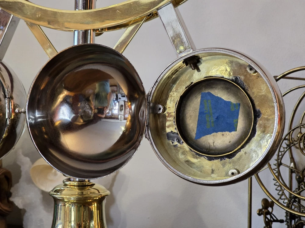 Antique French Industrial Clock – Late Victorian Era – Professionally Restored This lot features a rare late Victorian-era industrial clock, crafted in France with exceptional quality. The clock’s functional governor balls move up and down, controlled by a central spring retainer. The large glass globes over each dial magnify the silvered faces, enhancing its striking visual appeal. The case has undergone a full professional restoration. The brass has been carefully polished and waxed, while the nickel plating was expertly redone by a piano restoration specialist to ensure authentic, period-correct craftsmanship. The original dents and dings were intentionally preserved to maintain the clock’s historical integrity. The movement is an 8-day, time-only, lever-action mechanism. However, the barometer movement is missing, and while we have attempted to source a period-appropriate replacement, we have not yet found one. There are some chips to the edges of the glass, but they do not detract from the overall presentation. A rare and exceptional find, especially in this condition. Condition & Sale Terms: This clock is being sold for decorative purposes only. Mechanical functionality is not guaranteed, and it is sold As-Is, with no warranties or guarantees. Clock Measurements: "L x "W x "T Feel free to reach out with any questions before purchasing INTERNATIONAL SHIPPING NOTE: eBay requires signature confirmation on all purchases over $750, unfortunately due to USPS regulations signature cannot be done on international orders. Any international buyers will need to confirm in writing there approval to send without signature confirmation via ebay messages