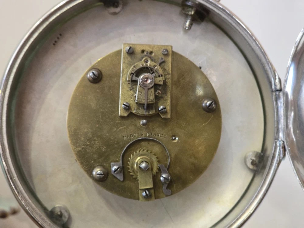 Antique French Industrial Clock – Late Victorian Era – Professionally Restored This lot features a rare late Victorian-era industrial clock, crafted in France with exceptional quality. The clock’s functional governor balls move up and down, controlled by a central spring retainer. The large glass globes over each dial magnify the silvered faces, enhancing its striking visual appeal. The case has undergone a full professional restoration. The brass has been carefully polished and waxed, while the nickel plating was expertly redone by a piano restoration specialist to ensure authentic, period-correct craftsmanship. The original dents and dings were intentionally preserved to maintain the clock’s historical integrity. The movement is an 8-day, time-only, lever-action mechanism. However, the barometer movement is missing, and while we have attempted to source a period-appropriate replacement, we have not yet found one. There are some chips to the edges of the glass, but they do not detract from the overall presentation. A rare and exceptional find, especially in this condition. Condition & Sale Terms: This clock is being sold for decorative purposes only. Mechanical functionality is not guaranteed, and it is sold As-Is, with no warranties or guarantees. Clock Measurements: "L x "W x "T Feel free to reach out with any questions before purchasing INTERNATIONAL SHIPPING NOTE: eBay requires signature confirmation on all purchases over $750, unfortunately due to USPS regulations signature cannot be done on international orders. Any international buyers will need to confirm in writing there approval to send without signature confirmation via ebay messages