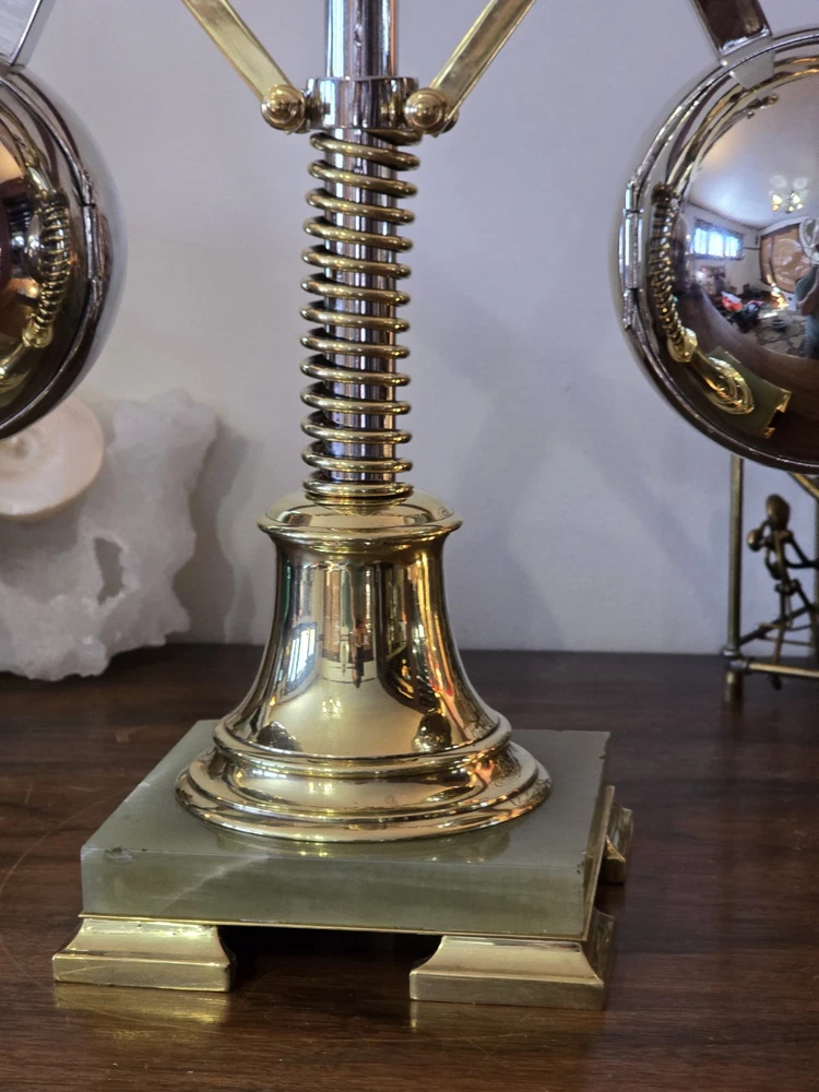 Antique French Industrial Clock – Late Victorian Era – Professionally Restored This lot features a rare late Victorian-era industrial clock, crafted in France with exceptional quality. The clock’s functional governor balls move up and down, controlled by a central spring retainer. The large glass globes over each dial magnify the silvered faces, enhancing its striking visual appeal. The case has undergone a full professional restoration. The brass has been carefully polished and waxed, while the nickel plating was expertly redone by a piano restoration specialist to ensure authentic, period-correct craftsmanship. The original dents and dings were intentionally preserved to maintain the clock’s historical integrity. The movement is an 8-day, time-only, lever-action mechanism. However, the barometer movement is missing, and while we have attempted to source a period-appropriate replacement, we have not yet found one. There are some chips to the edges of the glass, but they do not detract from the overall presentation. A rare and exceptional find, especially in this condition. Condition & Sale Terms: This clock is being sold for decorative purposes only. Mechanical functionality is not guaranteed, and it is sold As-Is, with no warranties or guarantees. Clock Measurements: "L x "W x "T Feel free to reach out with any questions before purchasing INTERNATIONAL SHIPPING NOTE: eBay requires signature confirmation on all purchases over $750, unfortunately due to USPS regulations signature cannot be done on international orders. Any international buyers will need to confirm in writing there approval to send without signature confirmation via ebay messages