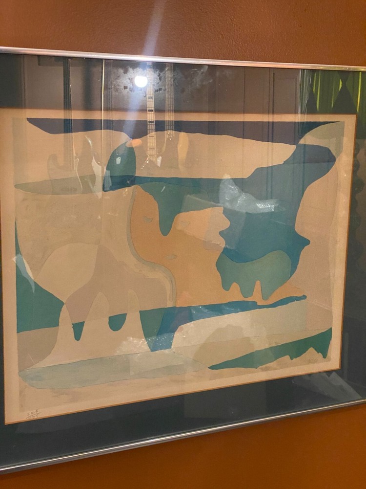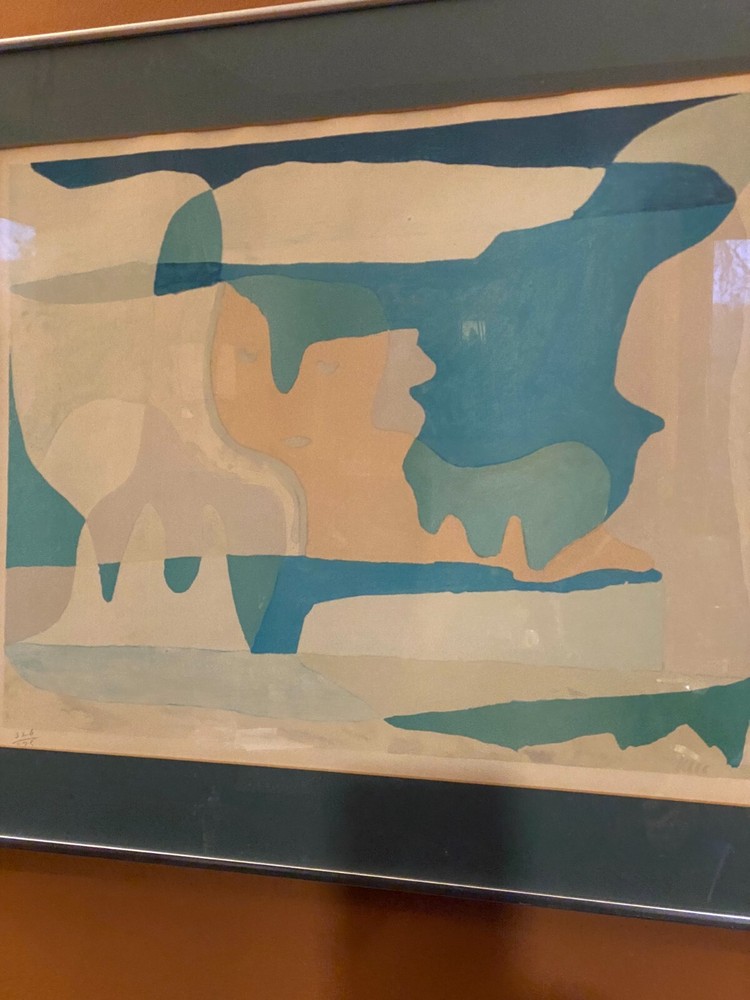 Very rare, vintage, Paul Klee silkscreen in limited edition (326 of 375). Abstract in soft blue and creams. Framed in a silver toned metal frame with dark green mat boards approximately 24 x 30 inches with the art being 18 x 24 inches. See Paul Klee's 1922 "Senecio" painting for example of same signature. Paul Klee (German: 18 December 1879 – 29 June 1940) was a Swiss-born German artist. His highly individual style was influenced by movements in art that included expressionism, cubism, and surrealism. Klee was a natural draftsman who experimented with and eventually deeply explored color theory, writing about it extensively; his lectures Writings on Form and Design Theory (Schriften zur Form und Gestaltungslehre), published in English as the Paul Klee Notebooks, are held to be as important for modern art as Leonardo da Vincis A Treatise on Painting was for the Renaissance He and his colleague, Russian painter Wassily Kandinsky, both taught at the Bauhaus school of art, design and architecture in Germany. His works reflect his dry humor and his sometimes childlike perspective, his personal moods and beliefs, and his musicality.