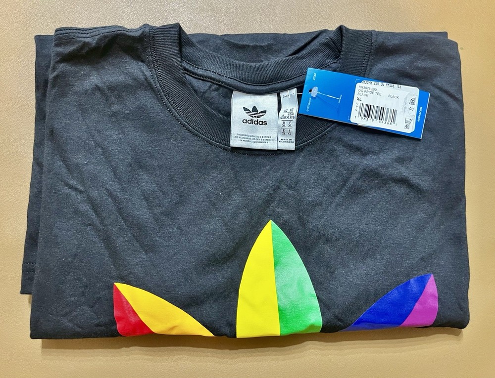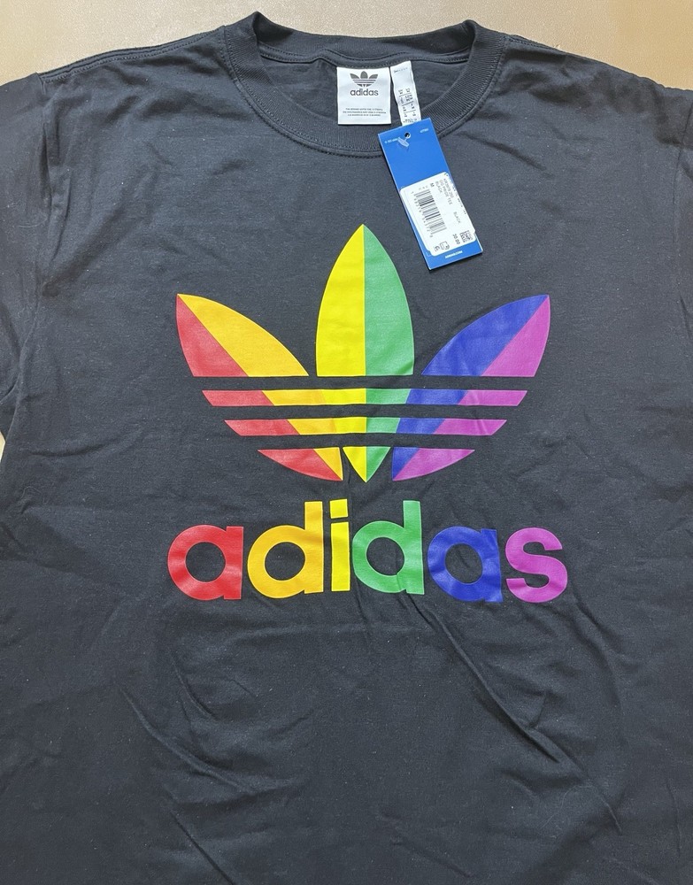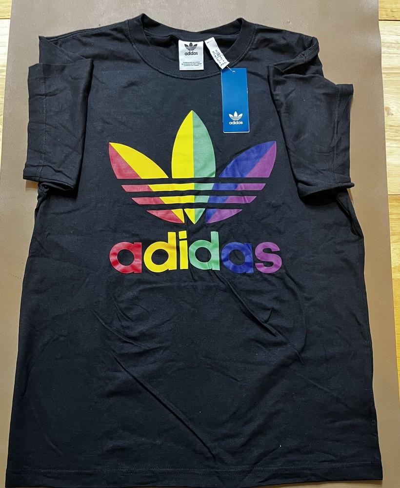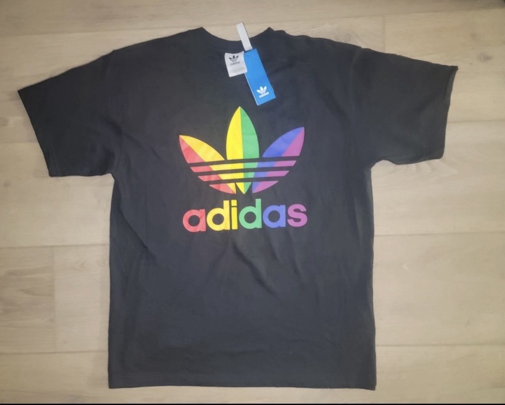The product is a rare and new men's Adidas Originals multi-color trefoil tee shirt in size XL. This sleeveless t-shirt features a crew neckline, is made of cotton, and has a regular fit. The shirt is part of the Adidas Originals Trefoil product line and showcases the brand's logo as accents. It is a vintage piece with a graphic print, making it a stylish addition to any man's clothing collection.
