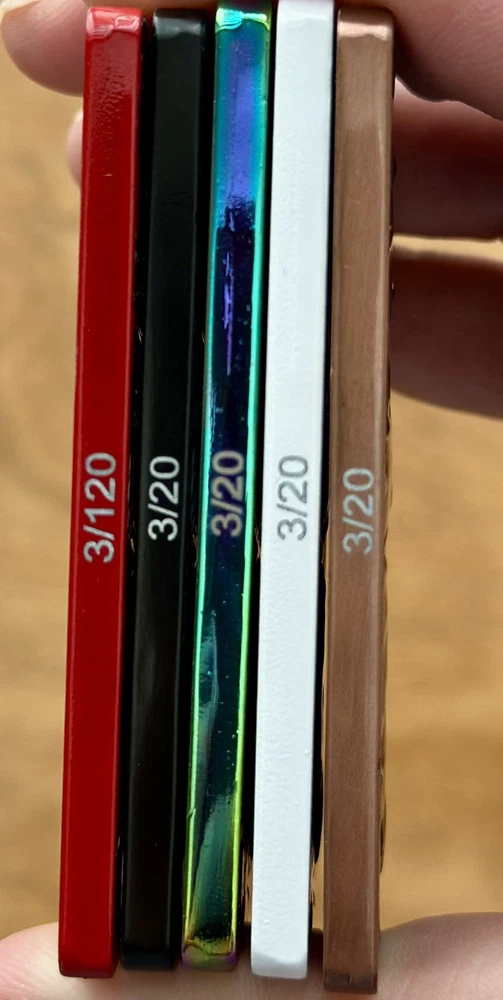 North Carolina State Investigator Gang Unit License Plate Set. All have same serial number. Only 20 of these sets were made. Red Dye (3/120), Black Dye (3/20), White Dye (3/20), Copper (3/20) , and Oil slick (3/20).