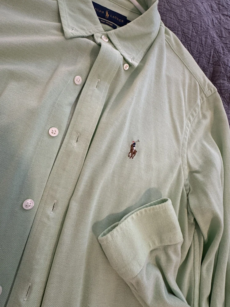 RARE Ralph Lauren Polo L Large Mens Long sleeve Button Down Shirt Pastel Green