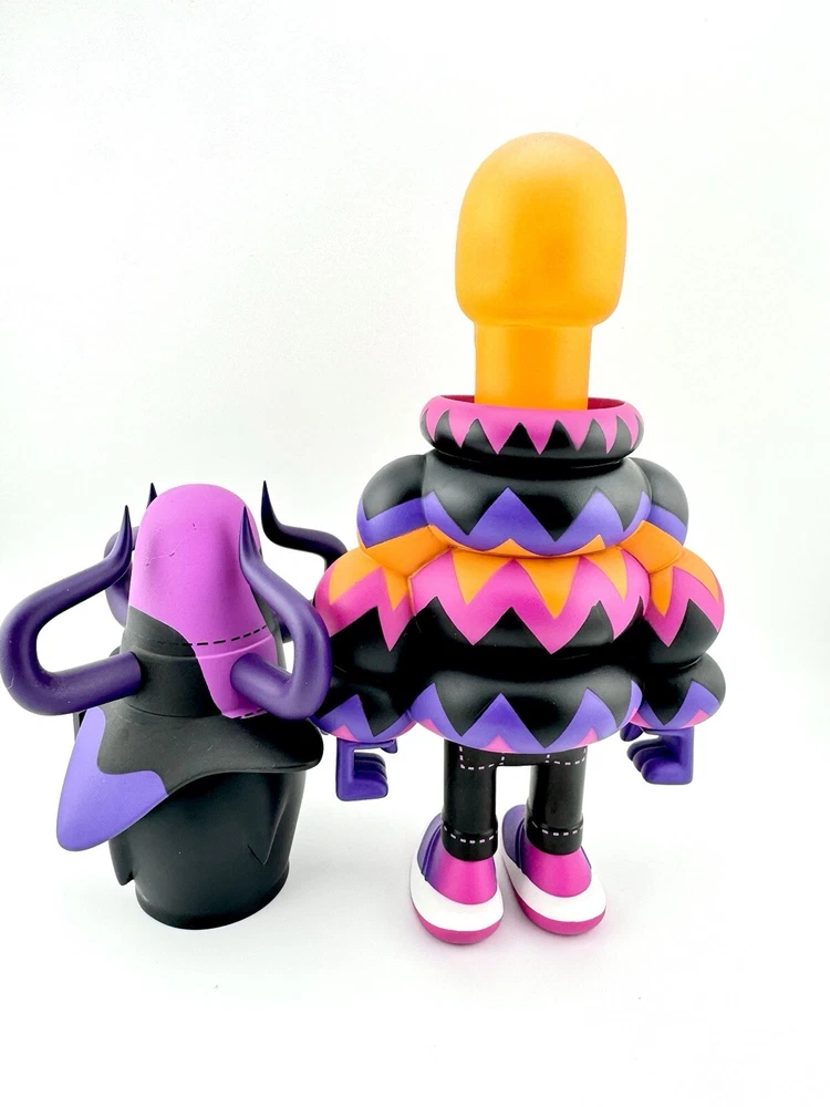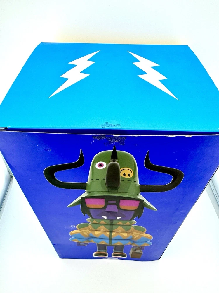 Legendary UK artist Pete Fowler blessed us with the third and final style of our favorite ten-inch tall vinyl raver. Maximillian Ca$h is an aging trust fund hipster who enjoys glow sticks and 8-tracks. Includes a removable head, revealing a transparent orange skull underneath. Ultra limited edition, just 333 produced Box opened for photos, feel free to msg with any questions. Thanks!
