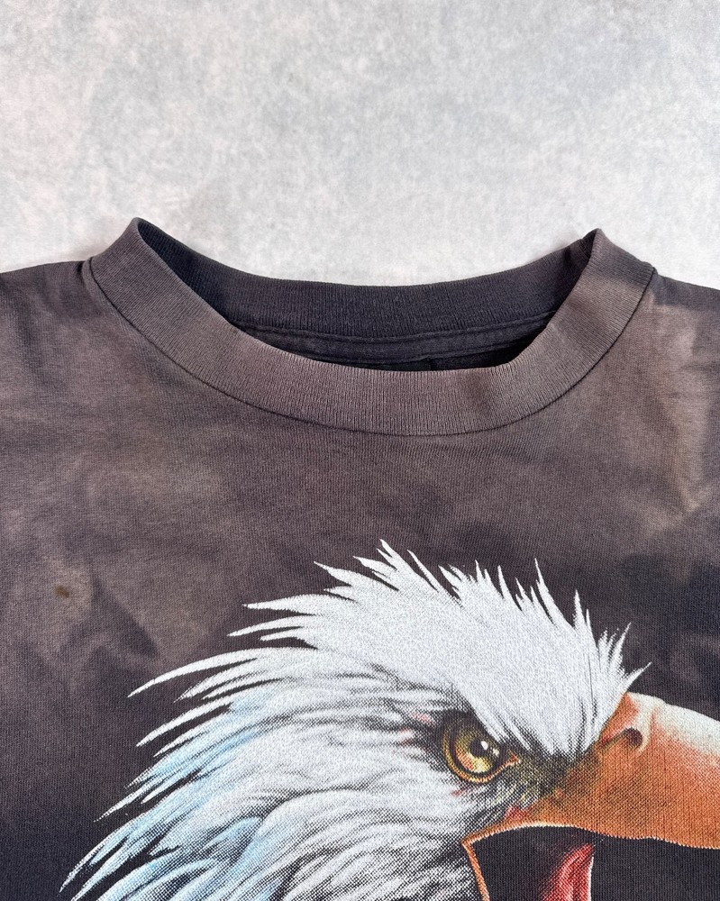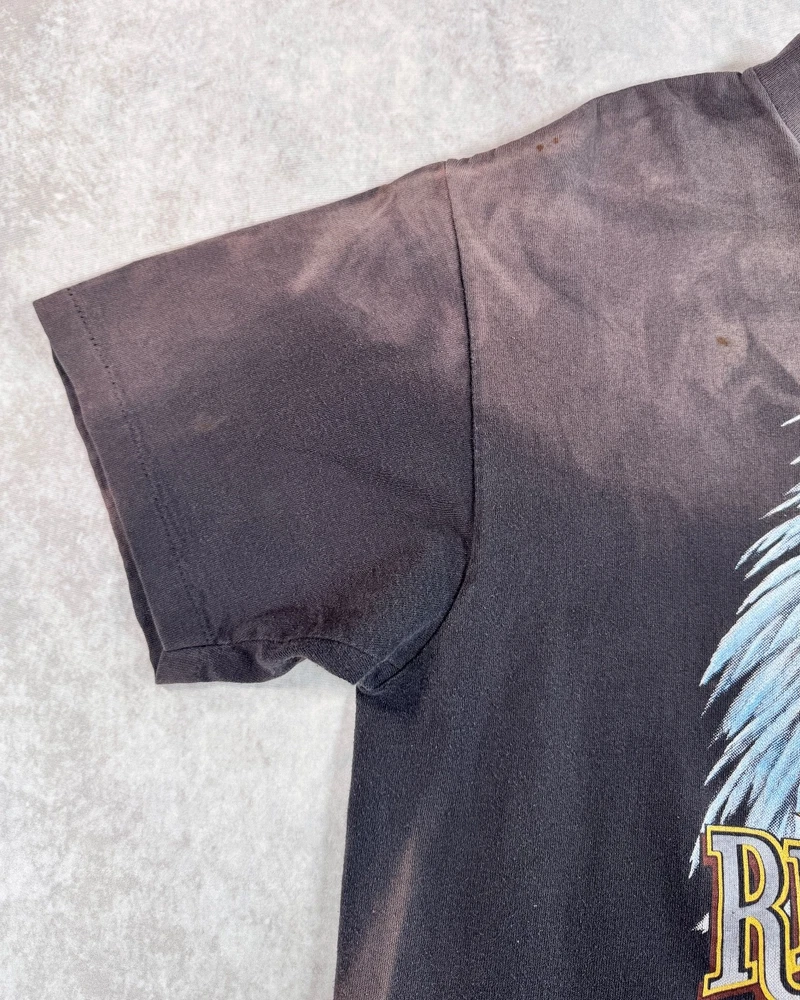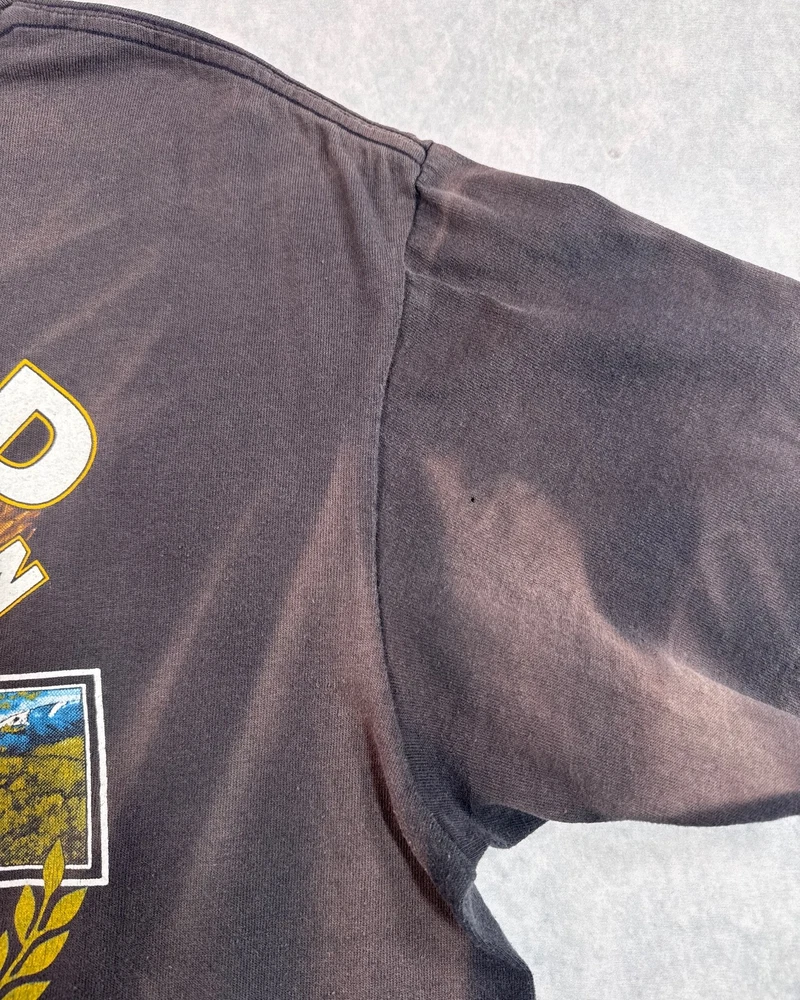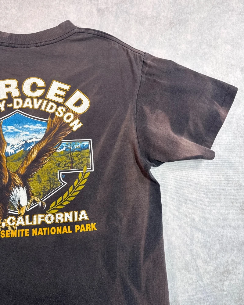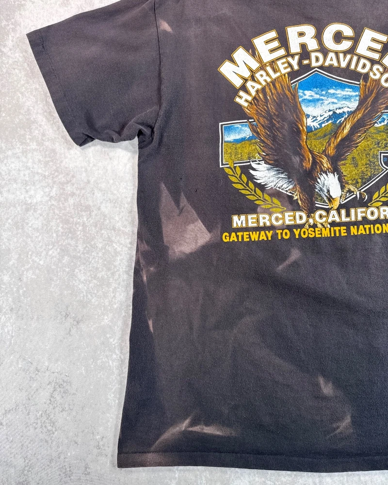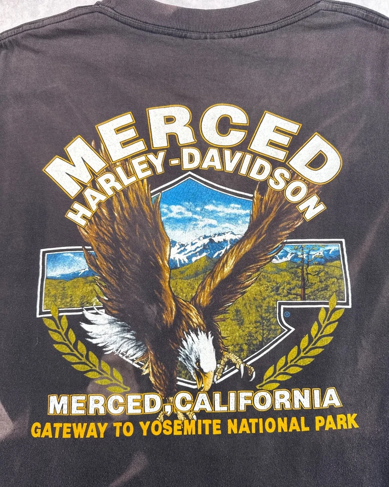 This product is a vintage 1991 Harley Davidson "Righteous Ruler" 3D emblem t-shirt by Harley-Davidson. Made of cotton with a black color, this short sleeve shirt has a crew neck and is machine washable. With a regular fit, this t-shirt is perfect for all seasons - summer, fall, and spring. Size large, this shirt is a unique and collectible piece for any Harley-Davidson enthusiast looking to add a classic touch to their wardrobe. SEE PHOTOS FOR ALL DETAILS AND MEASUREMENTS.