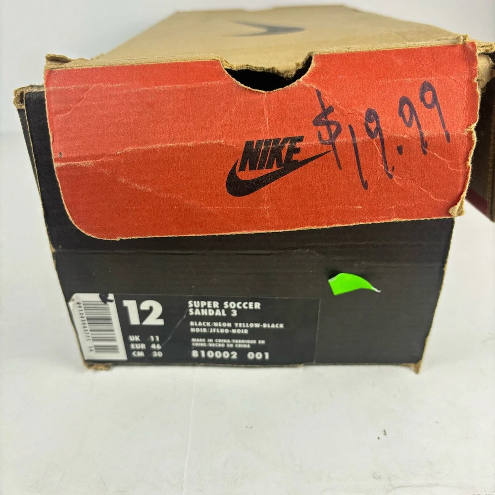 Nike Super Soccer Sandal 3 1999 - Black RARE VTG Deadstock nike slides, mens size 12 In great condition, no defects, comes in OG box *DISCLAIMER* 20+ yr old shoes may be more fragile and prone to damage, use with care Please reference photos before purchasing