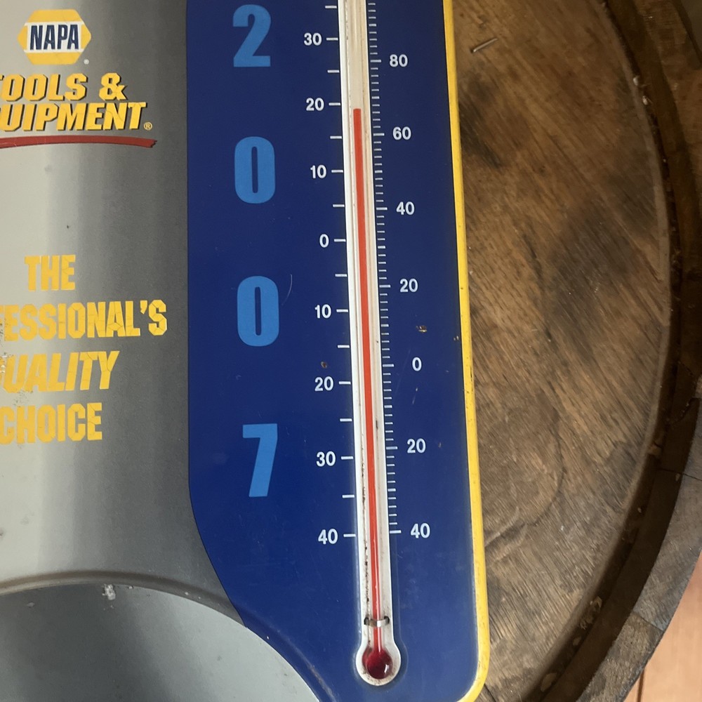 Please refer to all pictures to see scratches and marks on the sign. It is old so it does have somewhere to it. The product is a rare vintage NAPA metal thermometer from Huntsville, Texas. This collectible advertising item features a multi-color design and showcases a theme related to gas and oil. Made in the United States, this original piece is a unique addition to any collection of vintage dealer tools and equipment.