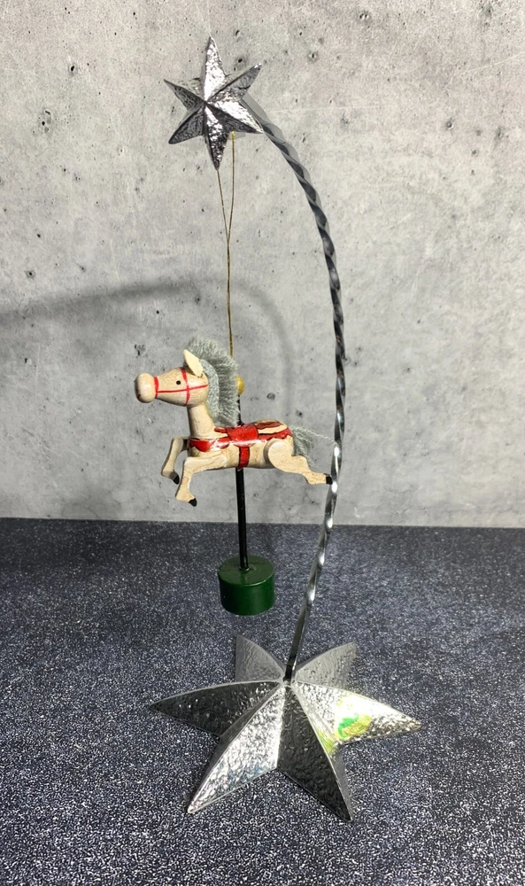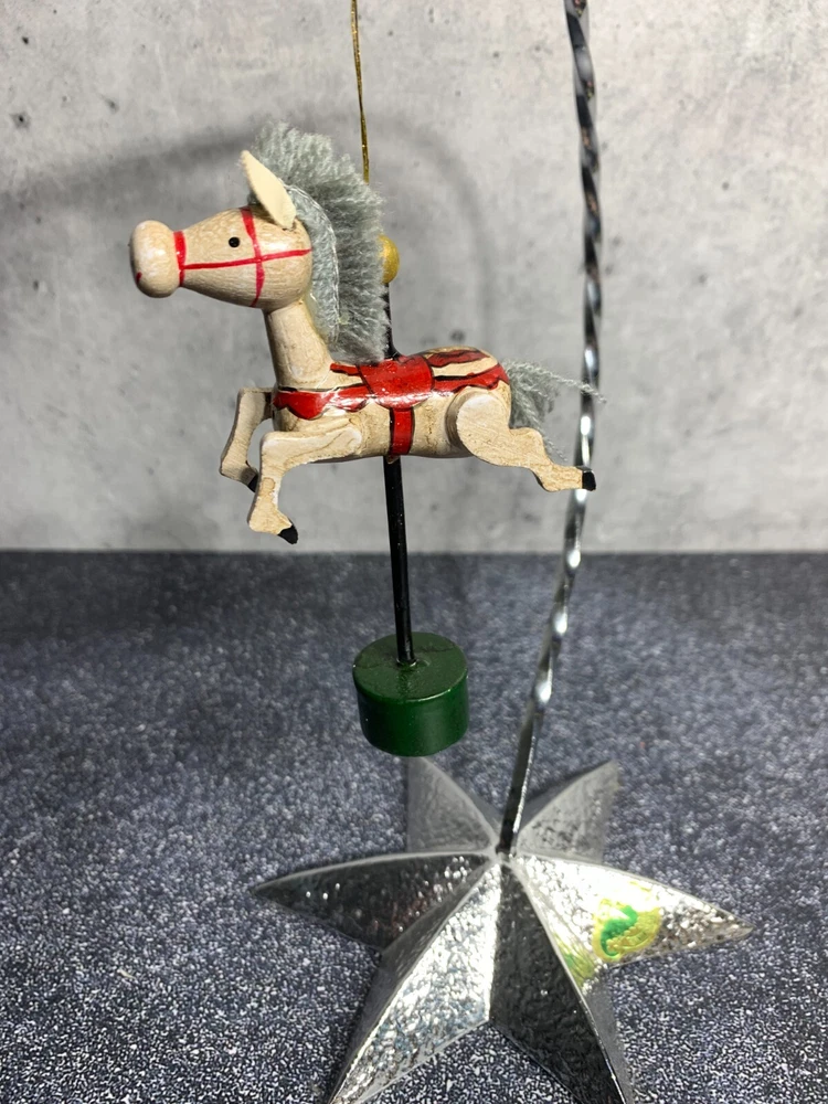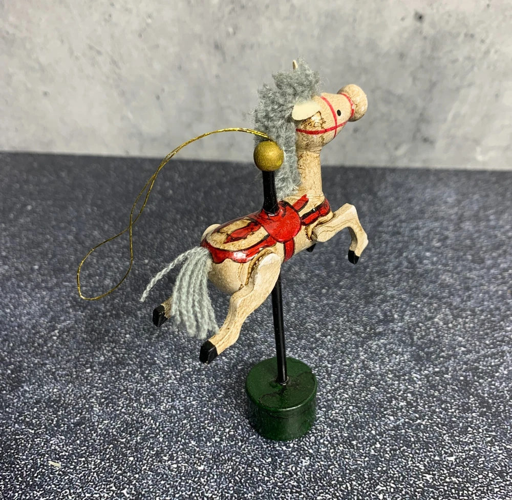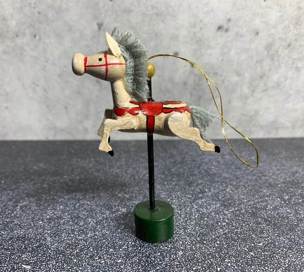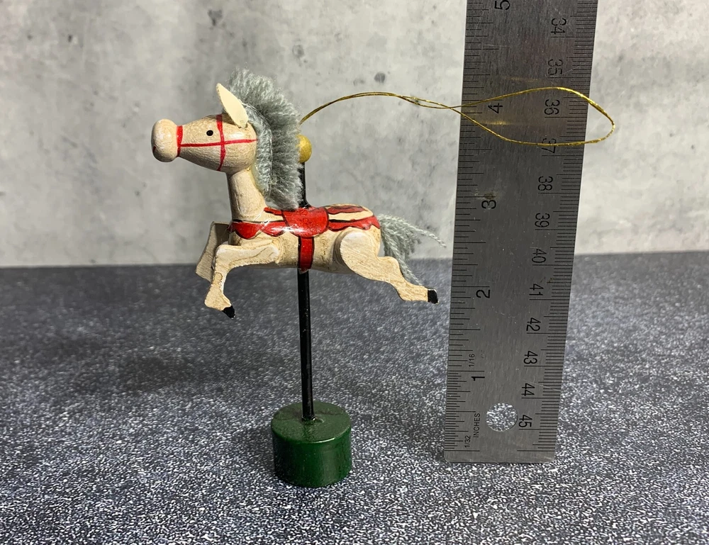 RARE - Vintage Midwest Wooden Horse Ornament - Carousel Pony - Hand Painted