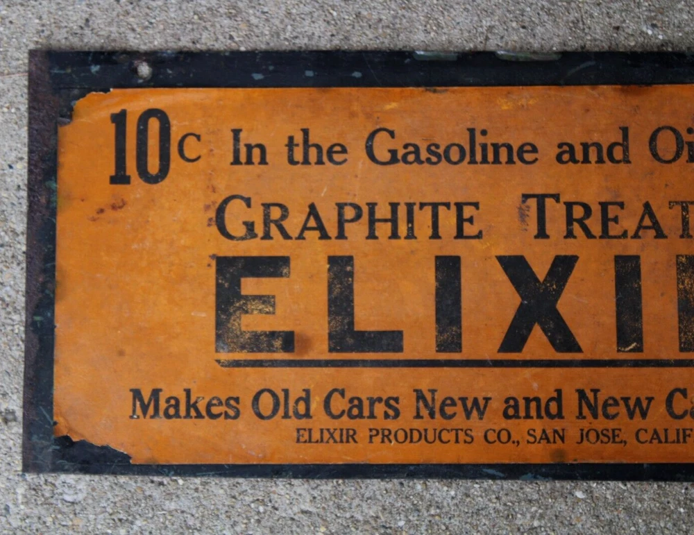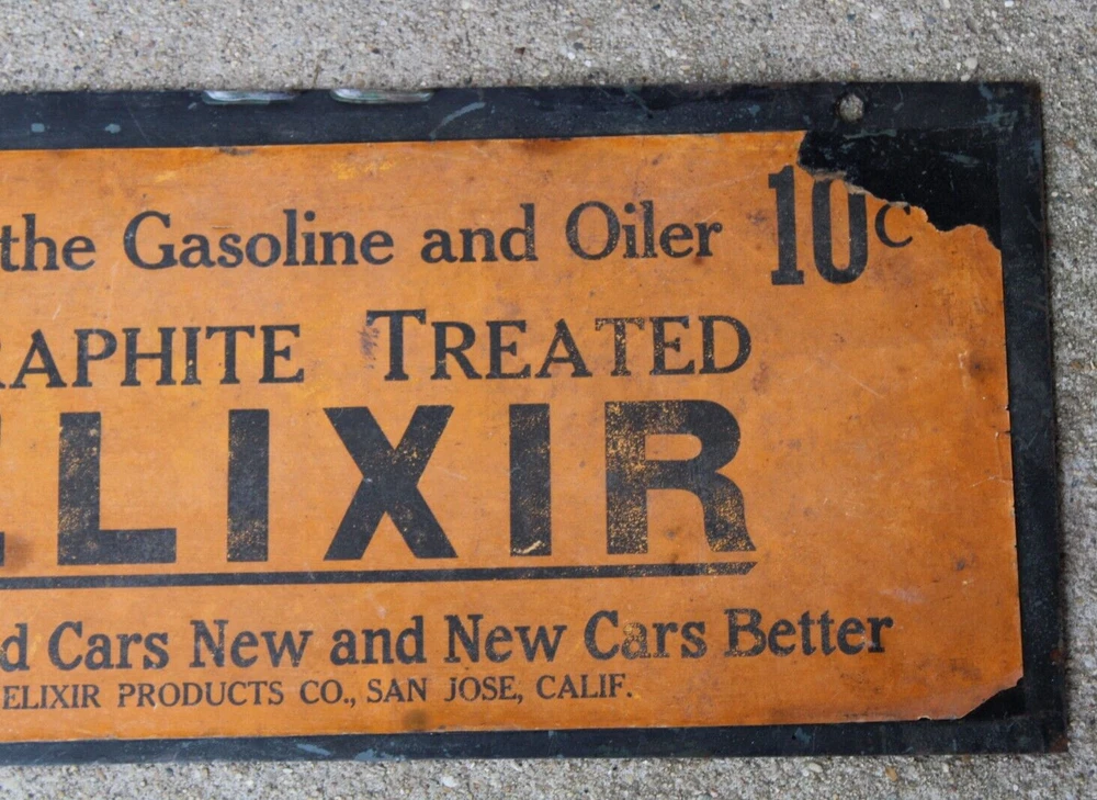 RARE early 1900s era ELIXIR GRAPHITE GASOLINE 10 cents~ OLD GAS STATION TIN SIGN