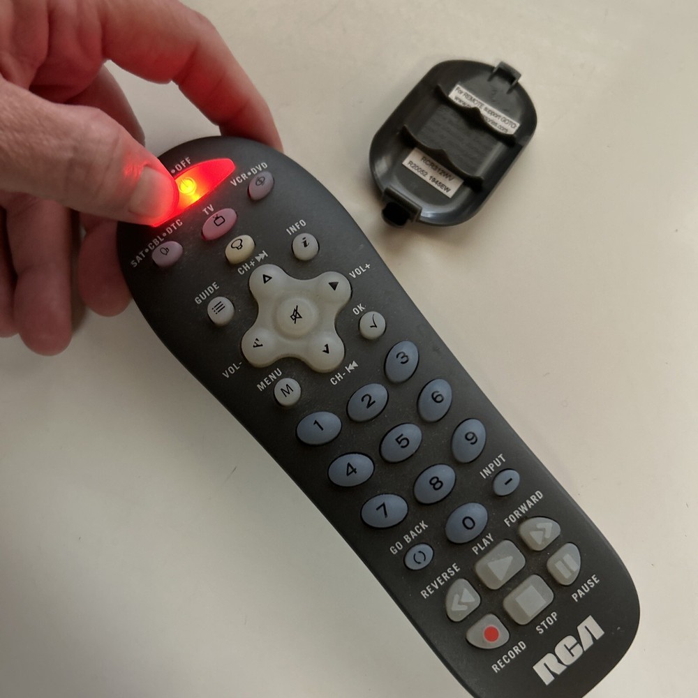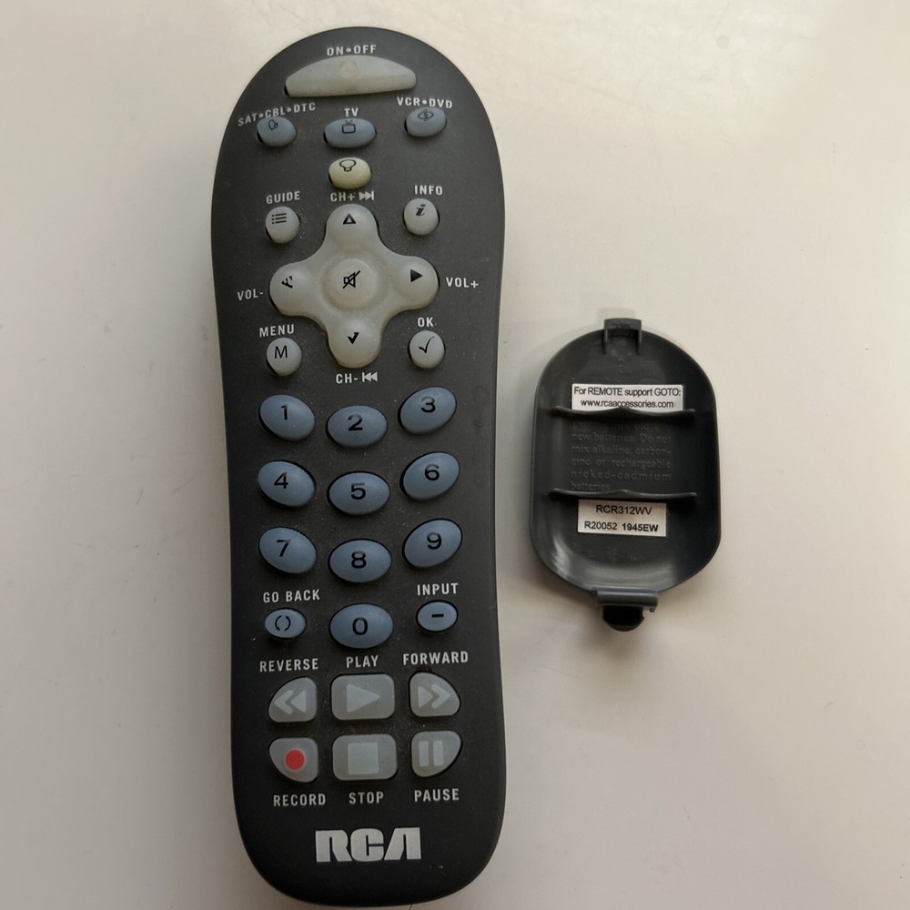 Elevate your entertainment experience with the RCA Three-Device Universal Remote Control. A versatile replacement for the RCR312WV model, this remote has been tested to ensure full functionality with your compatible devices. Its sleek gray design is not only stylish but also practical, allowing you to effortlessly navigate your television, video, and home audio settings. Crafted for convenience, this wireless remote control boasts easy-to-use buttons and features that are intuitively designed for everyday tasks. Whether you're adjusting the volume or switching between your favorite channels, this RCA remote provides the reliability and ease of use that every household deserves. RCA Three-Device Universal Remote Control *TESTED* RCR312WV.