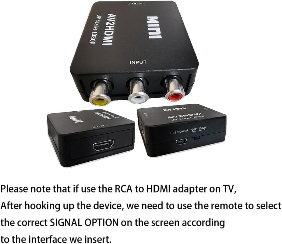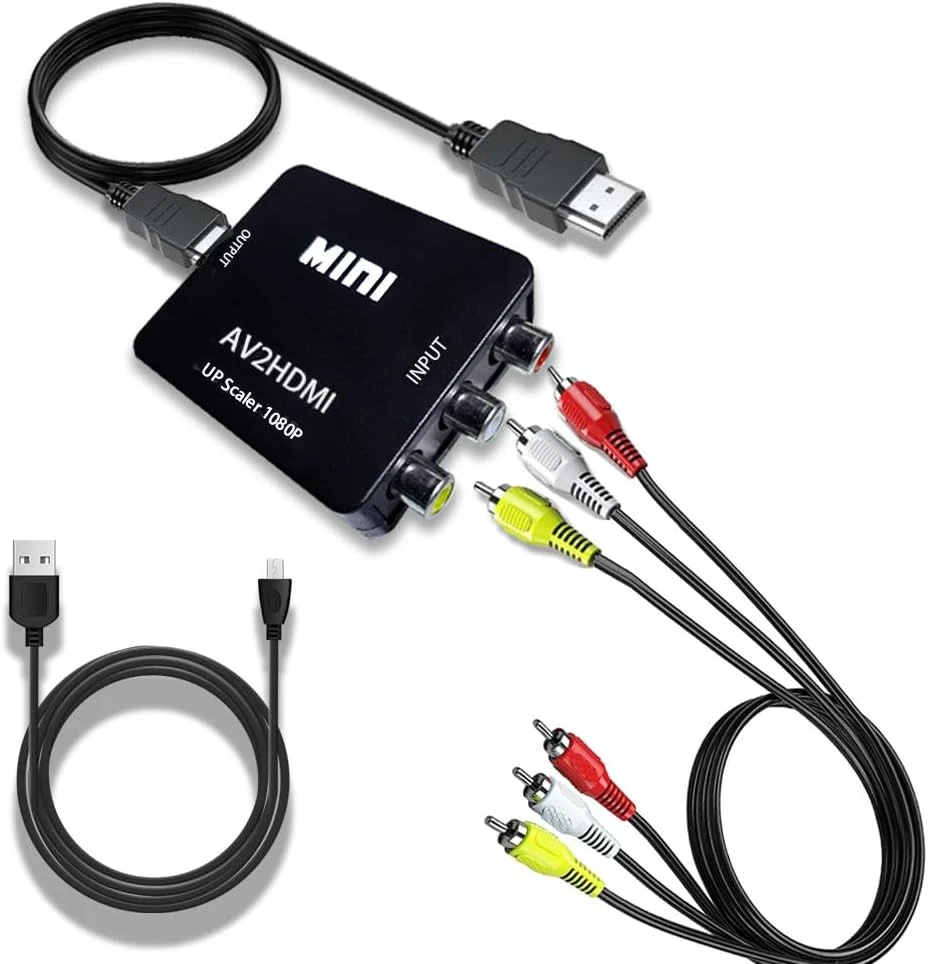 Package Set with HDMI cable x 1, RCA male cable x 1, Micro USB cable x 1, RCA HDMI adapter x 1, USER Manual x 1. Good for VHS Player, av to hdmi for VCR Player, rca to hdmi for wii and etc av cable hdmi adapter. The RCA to HDMI Converter only supports RCA to HDMI, NOT HDMI to RCA, and doesn't support the HDMI DVD player connects to your older TV with RCA ports av hdmi upscaler. Meaning RCA inputs for HDMI output only-cvbs hdmi converter The AV HDMI converter is applied for Xbox, WII, PS3, PS1, PS2, STB, VHS, N64, VCR, DVD Players and others devices with composite AV input vcr hdmi converter. Composite hdmi adapter TV formats such as PAL, NTSC4.43, SECAM, NTSC3.58, PAL/N, PAL/M, & More. The RCA HDMI is Plug and Plays & Easy to Use, The mini AV HDMI Adapter needs no extra driver, portable & flexible. And please Note that the USB power cable needs a 5V 1A power during use. This mini composite hdmi converter user-friendly. This PUTELTAL CVBS to HDMI converter offers HDMI output up to 720p/1080p 60Hz Resolutions, The VCR hdmi converter Convert RCA AV CVBS composite (Red, White, Yellow) input to HDMI output on Monitors/HDTVs. Product Description