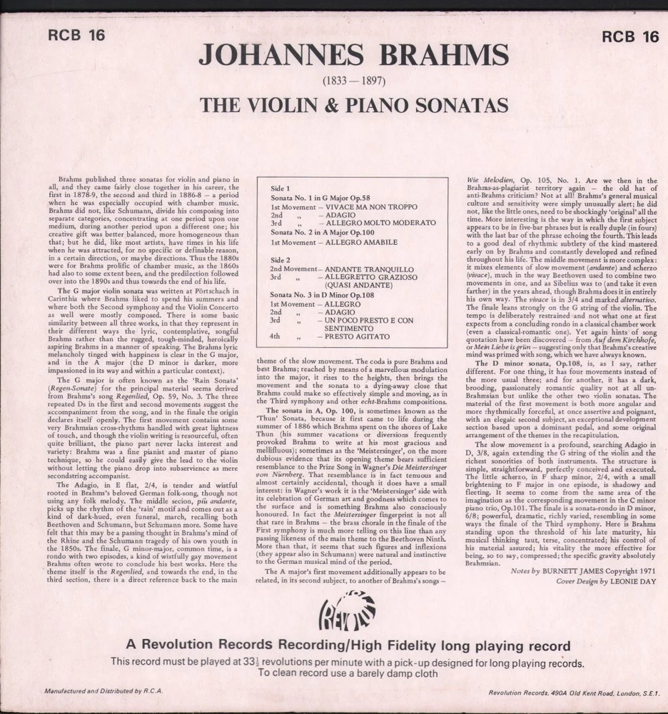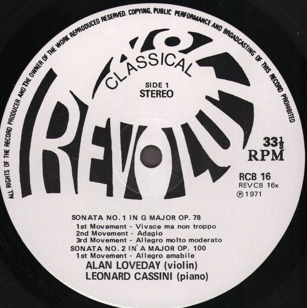 GRADING Our Grading System The table below is an overview of how our grading system works. The first grade is for the sleeve and second grade is for the media/disc, e.g. VG+/EX means that the item's sleeve is in Very Good Plus condition and the media/disc is in Excellent condition. If there is only one condition, e.g. /EX, it means that the item is not in a picture sleeve and that the media/disc is in excellent condition. Records that aren't in picture sleeves will either be in a company sleeve or a generic plain sleeve. If you have any questions, please get in touch. Condition Sleeve Media MINT (10/10) Mint, perfect Mint, perfect EX+ (9/10) Excellent plus, near mint Excellent plus, near perfect EX (8/10) Excellent, well looked after, clean, only slight signs of use Excellent, well looked after, clean, only slight signs of use EX- (7/10) Excellent minus, light wear and signs of use Excellent minus, light wear and signs of use VG+ (6/10) Very good plus, some moderate wear Very good plus, some scuffs, no deep marks VG (5/10) Very good, well used and worn Very good, well used and marked VG- (4/10) Very good minus, very worn Very good minus, very worn and marked GOOD (3/10) Good, some major wear Good, some major wear and scuffing FAIR (2/10) Fair, major wear Fair, major wear and scuffing POOR (1/10) Poor, severe wear Poor, severe wear and scuffing DELIVERY Combined Postage If you add all the items you wish to purchase from us to your shopping basket/cart, and then go to the checkout page from the shopping basket page, the shipping cost will be automatically combined. Packaging All of our items are parcelled using strong specially designed packaging, each vinyl in an order is placed in a clear plastic sleeve and plain paper white sleeve, and is separated from its cover (unless it is advertised as sealed), to prevent any damage during transit. If an item is sealed, and you would prefer the vinyl to be placed outside of its sleeve before dispatch, please let us know. Prices You can see all delivery options and prices for an item on the "Postage and payments" tab. Tracked delivery If you wish to have a tracking number with your order, please select the "Signed" or "Express" delivery option, "Standard" delivery does not include a tracking number. SHOP Click here to view our Ebay shop, with over 200,000 items in stock FAQ Does a used item include the original inner sleeve/insert/poster etc.? We will always include in the description if a used item includes any additional parts, e.g. "with inner" or "includes poster", if you know an item originally came with any additional parts, such as a printed inner sleeve, and it isn't mentioned in the description, then generally the used item won't include it, but please feel free to ask. New items will always be complete, unless otherwise specified. CATEGORIES Shop Home 10" Vinyl Records 12" Vinyl Records 7" Vinyl Records Cassettes (Tape) CDs (Compact Discs) LP Vinyl Records Music Memorabilia Other Artist Alan Loveday / Leonard Cassini Title Brahms - Three Violin Sonatas Format LP Vinyl Country UK Label Revolution Classical Catalogue Number RCB16 Year 1971 Description 10 track stereo Condition (Sleeve/Disc) VG+/EX Track List Sonata No 1 In G Major Op.58 A1. Vivace Ma Non Troppo A2. Adagio A3. Allegro Molto Moderato Sonata No 2 In A Major Op.100 A4. Allegro Amabile B1. Andante Tranquillo B2. Allegretto Grazioso Sonata No.3 In D Minor,Op.108 B3. First Movement: Allegro B4. Second Movement: Adagio B5 . Third Movement: Un Poco Presto E Con Sentimento B6. Fourth Movement: Presto Agitato DELIVERY INFORMATION If you wish to have a tracking number with your order, please choose the Signed or Express delivery option, the Standard delivery option does not include a tracking number. Please note, the Express option for delivery outside of the UK includes a tracking number, but has the same delivery time as the Standard option. WE HAVE MORE ALAN LOVEDAY / LEONARD CASSINI ITEMS IN STOCK We have more items in stock by this artist, click here to see them. ABOUT US Vinyl Tap has been in the business of selling music for over 30 years, and in that period we have supplied many thousands of collectors and music fans around the globe with vinyl, CDs and music memorabilia. You can check out the over 200,000 items that we have in stock on our Ebay shop, here . Artist: Alan Loveday / Leonard Cassini - Title: Brahms - Three Violin Sonatas - Format: LP Vinyl - Country: UK - Label: Revolution Classical - Catalogue Number: RCB16 - Year: 1971 - Description: 10 track stereo