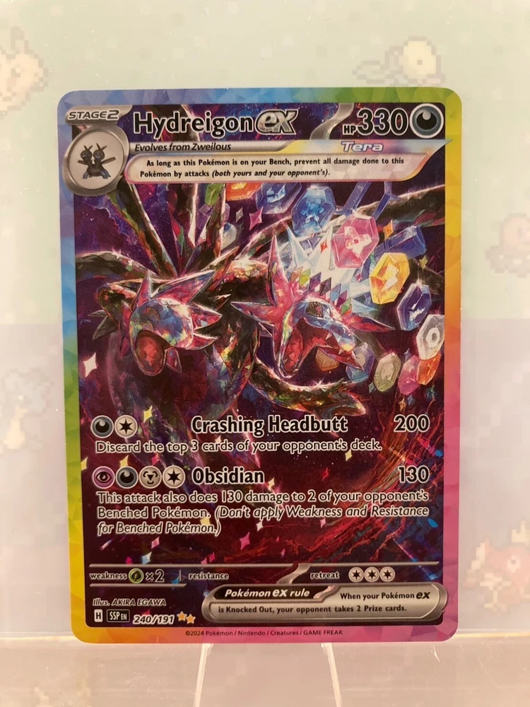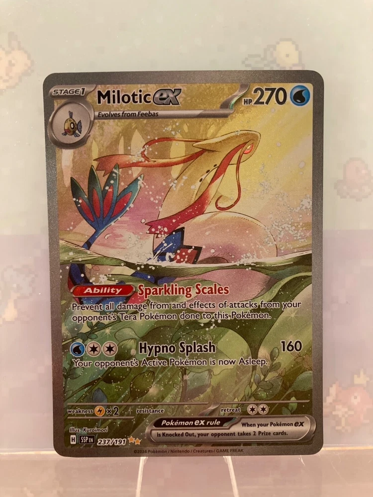 Choose your card from Pokemon SSP-EN "Surging Sparks" !!! Condition : Near Mint to Mint *Condition will be Near Mint to Mint but may receive not the exact card on the photo. *Some cards may have damage from the beginning but the damage is not too bad. (I will add "LP" for those and make it a little cheap so please check before ordering) Shipping from : US. THIS LISTING REQUIRES SOME CONDITIONS AS FOLLOWS. 1) MINIMUM PRICING REQUIREMENT *before tax for 1 to 4 cards in 1 order : MINIMUM $3 in total for 5 to 8 cards in 1 order : MINIMUM $6 in total *will be shipped in 2 different eBay Standard Envelopes if the total cost is less than $50 or the pricing above $20 (per card) is not included in the order. more than 9 cards in 1 order : MINIMUM $11 in total *will be shipped using USPS Ground Advantage Adding the cards from other listings to match the requirement is of course fine! This minimum pricing is to secure the shipping cost for both the buyers and ourselves. If we receive an order which does not match this requirement, we will send a message telling that to you, but if we do not receive any messages back, then we will cancel your order in 10 hours. Thank you for your understanding. 2) MAXIMUM QUANTITY PER CARD : MAXIMUM 4 SAME CARDS FROM SAME BUYER This is to support as many buyers as possible to have the cards. We will ship the cards in the conditions below. We ship cards with Sleeve, Top loader and Stay Flat Cardboard Mailer for USPS Ground Advantage and Top loader for eBay Standard Envelope. Also if the cards are above $30, we will add the bubble envelope inside the Cardboard Mailer to make it even safe!