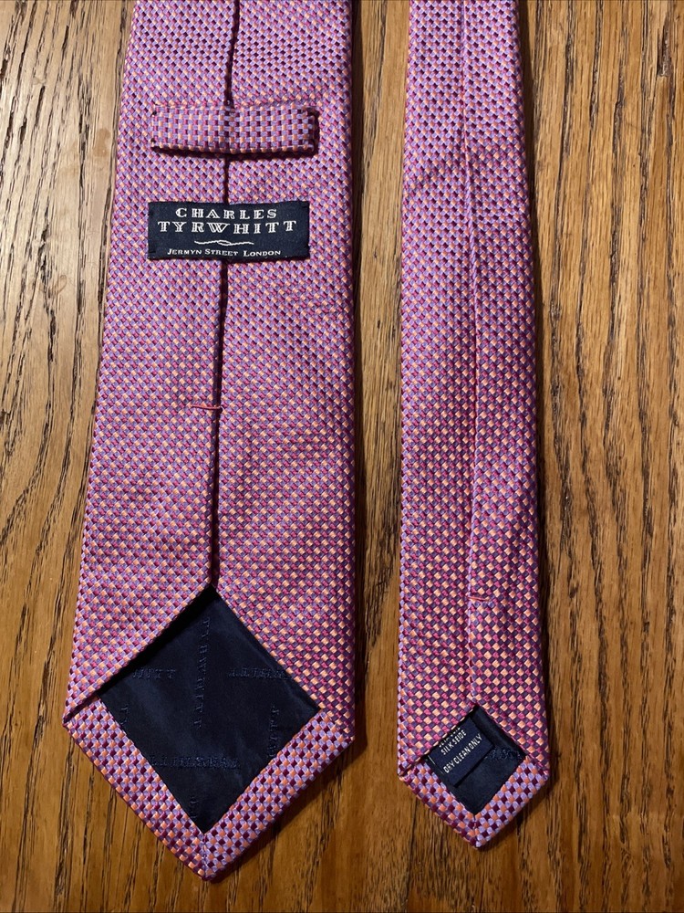 Country of Origin:United KingdomColor:MulticolorVintage:NoMaterial:100% SilkBrand:Charles TyrwhittStyle:DesignerDepartment:MenPattern:Fine GeometricItem Width:ClassicTheme:Preppy, DesignerFabric Type:WovenType:Tie