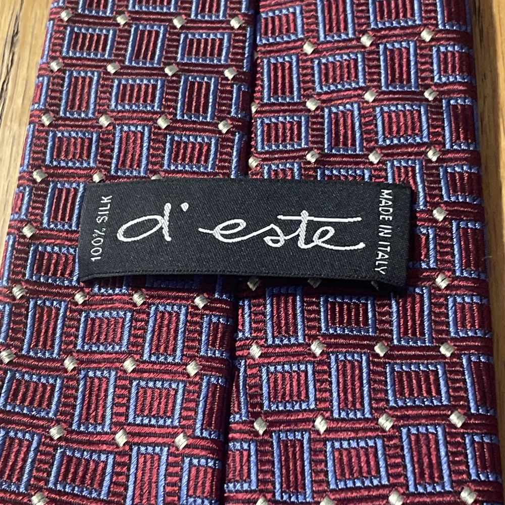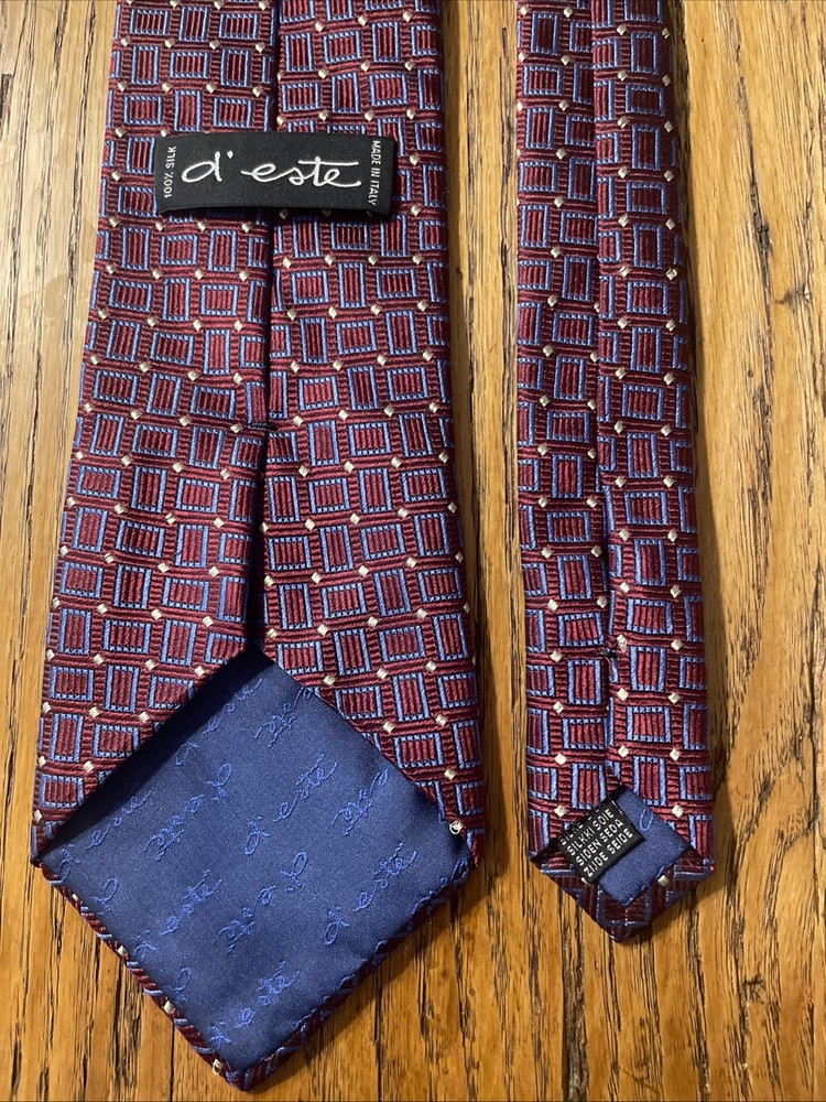 Type: Tie Theme: Preppy Style: Designer Item Width: Classic Vintage: No Pattern: Geometric Country of Origin: Italy Brand: D’este Department: Men Color: Multicolor Fabric Type: Woven Material: 100% Silk