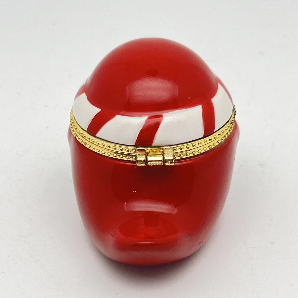 Hinge works great. There is a little tarnish on the gold- see pics. We pack safely and ship quickly. Please let me know if you have any questions and thank you for shopping with me!🌼 RED ROBIN BIRD KEEPSAKE HINGED TRINKET BOX - GOLD TRIM BABY CARDINAL CHRISTMAS.