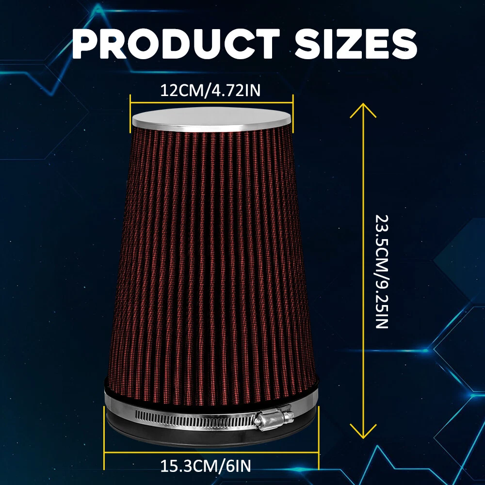 Specification: Material:Cotton Gauze Color:Red Size:as picture show Item Top Diameter:12CM/4.72INCN Item Bottom Diameter:15.3CM/6INCH Item Height:23.5CM/9.25INCN Features: *Engineered Power State-of-the-art air filter media is designed to increase horsepower and acceleration as well as improve overall engine performance. *4 Layers of Protection Multiple layers of premium cotton gauze treated with a specially-designed tacking agent work together to create an intricate mesh of engine filter media that is designed to block and trap harmful contaminants. *Rugged Construction RED Short 6" INCH 203mm Inlet Truck Air Intake Cone Replacement Dry Air Filter Specification: Material:Cotton Gauze Color:Red Size:as picture show Item Top Diameter:12CM/4.72INCN Item Bottom Diameter:15.3CM/6INCH Item Height:23.5CM/9.25INCN Features: *Engineered Power State-of-the-art air filter media is designed to increase horsepower and acceleration as well as improve overall engine performance. *4 Layers of Protection Multiple layers of premium cotton gauze treated with a specially-designed tacking agent work together to create an intricate mesh of engine filter media that is designed to block and trap harmful contaminants. *Rugged Construction Universal Air Filters are manufactured with durable, premium materials and state-of-the-art construction methods to last a lifetime. *Simple Installation It is the easiest and most cost-effective way to upgrade the performance of your vehicle. *Universal Fitment Designed for use on a variety of applications. Packaging include: Air Intake Cone Filter *1 Item Specifics Brand AUXITO Type Dry Type Manufacturer Part Number DGT-6IN-8IN-H Placement on Vehicle Front Material Cotton Gauze Manufacturer Warranty 2 Years Universal Fitment Yes Item Top Diameter 12CM/4.72INCN Item Bottom Diameter 15.3CM/6INCH Item Height 23.5CM/9.25INCN Color Red FAQ ♥ If you have a decoding problem or any other problems, please contact us first, we will help you with it. We will reply you within 24 hours in working days. I'm a new seller, thanks a lot for your trust and convince! I will serve you with all my heart. ♥ Q1: Will this bulb fit my vehicle? A: We can match almost any vehicle to one of our bulb sizes. eBay only lets us include some vehicle fitments per listing, but if your vehicle does not show up on the compatibility table at the top of our listings, welcome you to contact us for free consulation before purchasing a product. Q2: My item has not arrived, what's taking so long? A: Sometimes items take longer than expected, especially if it’s going far or to rural area. Check with your post office to see if your item has been held up. Sometimes Royal Mail will not update a tracking number until it has arrived at its destination. If your item still don't arrive after a few days, let us know so we can double check for you and help solve it asap. Q3: My bulbs won't fit, help! A: Special bulb holder may be required. See if you can take the holder from the stock bulb. If not, let us know. The bulb size may be wrong, double check the item you received with the item you ordered. Do you have an aftermarket lighting housing? These may not be perfectly fitted for aftermarket bulbs and will require some manual modifications. Q4: Neither side lighting up? Both sides flicker, hyper flash, or work inconsistantly. A:Check the light fuses, and then check the ballast plugs to insure correct installation. If this doesn't work, there may be a voltage problem with the vehicle. You probably just need a relay or capacitor. Even though some bulbs are builtin resistors, they may still need a decoder. Pay & Ship (1). We gladly accepts payment via PayPal, We will ship your item(s) within 24 hours. (2). Before payment, please keep the consistency of Paypal address and ebay address. (3). Quantity orders are welcome! Returns (1). We offer 60 days free return policy. Please contact us within 60 days from the date you receive your order if you have any issues with the product or want return. Refund will be send after we got your resend package. (2). All returned items should be in the original packaging , return tracking information should be provided . Contact Us (1).Negative feedback will not help resolve any problems you have, please contact us via eBay messages before leaving negative feedback , our customer service will make best effort to help you with the issues. (2).We maintain high standards of excellenceand strive for 100% customer satisfaction! Feedback is very important to us. We request that you contact us immediately before you give us neutral or negative feedback, so that we can satisfactorily address your concerns. About us We're professional in car and motorcycle accessories, especially in LED bulbs. We have our own factory and R&D team. Our belief is to sell top quality items that fit your car and serve you with our heart. Anything please feel free to contact us! Our customer service is very responsibility. Come and follow us! DESCRIPTION NEW ARRIVED HOT SALE CONTACT US SAVE US Store Category Store Home Other Hot Item Inlet Truck Air Intake Cone Replacement Quality Dry RED 6" 152mm Air Filter USD 25.99 2X Universal Air Filter Induction Kit Sports Car Cone Chrome Finish Red 76mm 3" USD 41.84 RED Short 6" 152mm Inlet Truck Air Intake Cone Replacement Dry Air Filter USD 26.59 Air Filter Turbo Crankcase Small Head Cold Car Vent Intake Mushroom Oil Breather USD 24.99 Universal Air Filter Induction Kit Sports Car Cone Chrome Finish Red 76mm 3" USD 22.49 New List Item 2X Universal Air Filter Induction Kit Sports Car Cone Chrome Finish Red 76mm 3" USD 41.84 Air Filter Turbo Crankcase Small Head Cold Car Vent Intake Mushroom Oil Breather USD 24.99 RED Short 6" 152mm Inlet Truck Air Intake Cone Replacement Dry Air Filter USD 26.59 Air Filter Turbo Crankcase Small Cold Head Car Vent Intake Mushroom Oil Breather USD 23.74 Universal Air Kit Filter Induction Car Sports Chrome Cone Finish Red 76mm 3" New USD 23.74 Pictu